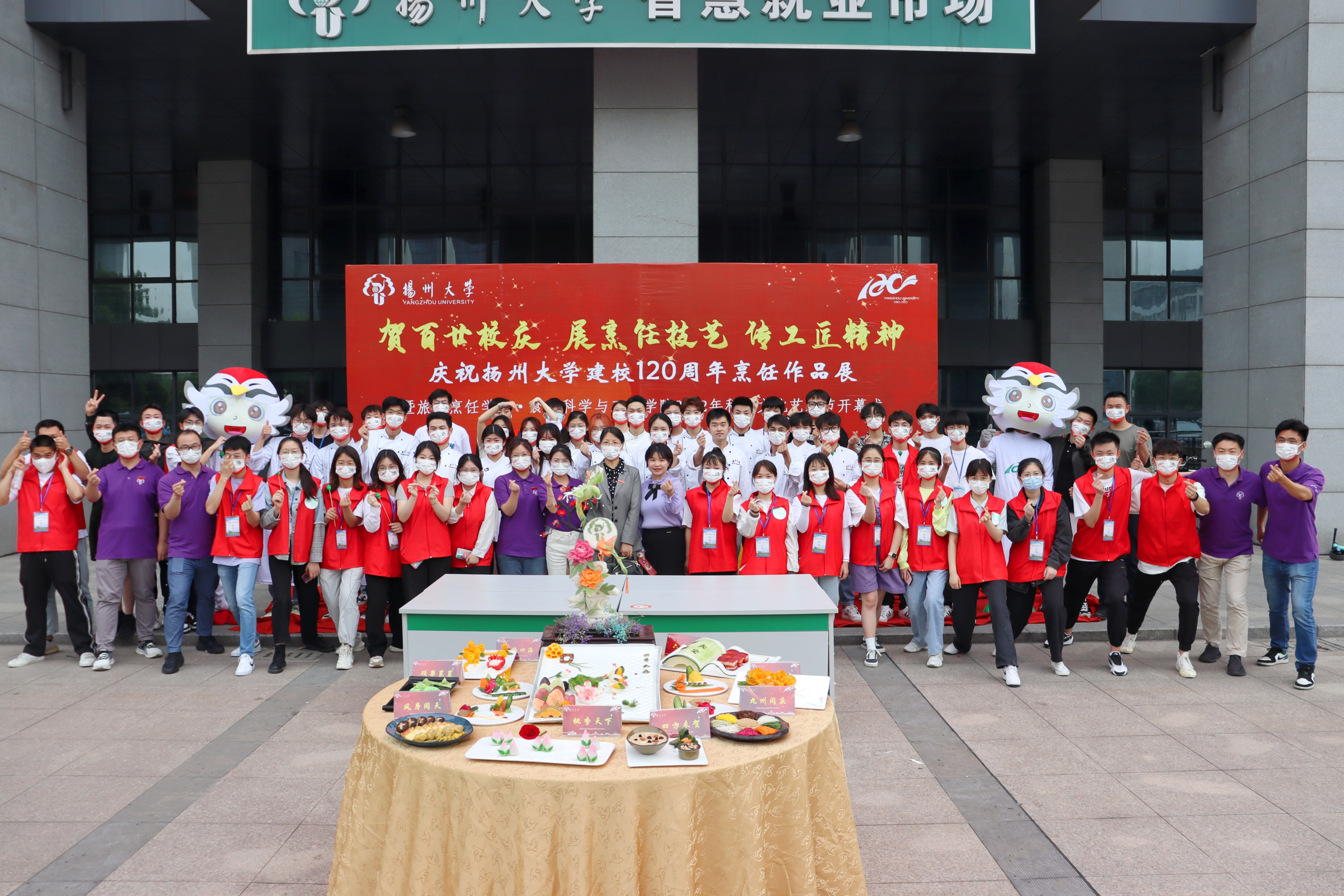 5月19日下午,学院在扬子津文体馆东侧举行“贺百廿校庆 展烹饪技艺 传工匠精神”——庆祝扬州大学建校120周年烹饪作品展。校党委副书记叶柏森出席并讲话。