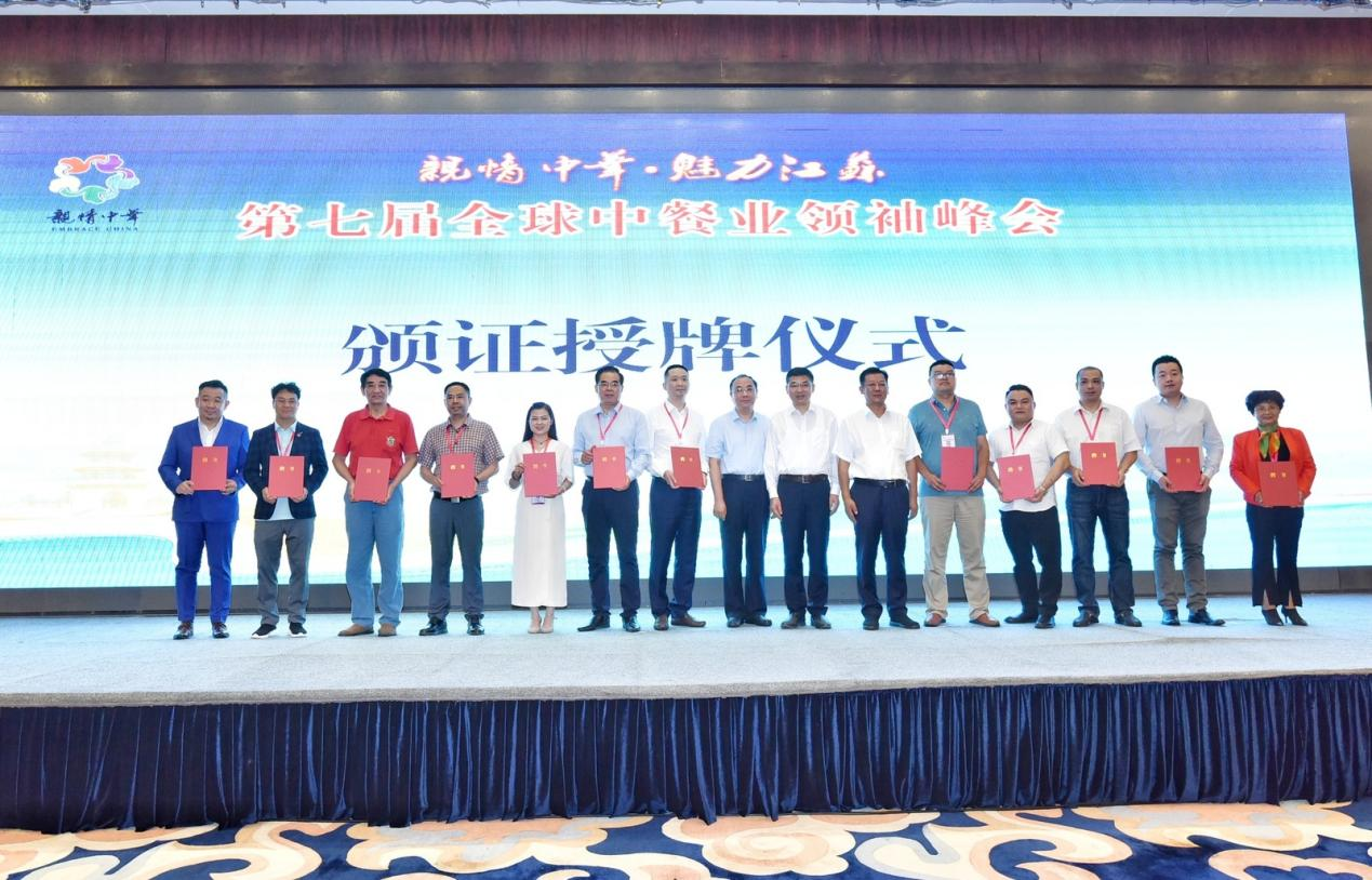 会上,与会领导为新确立的“亲情中华·魅力江苏”中餐文化海外推广中心代表和新聘请的推广使者代表颁证授牌。