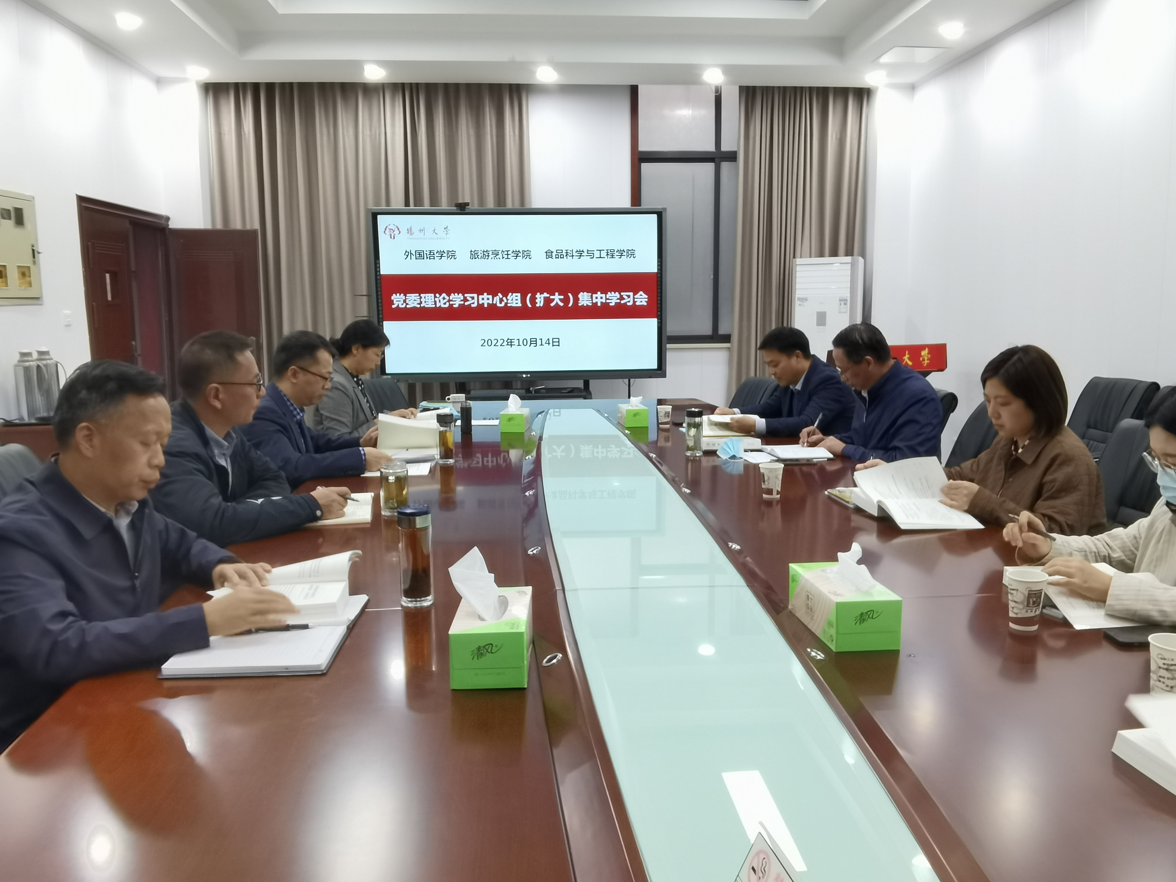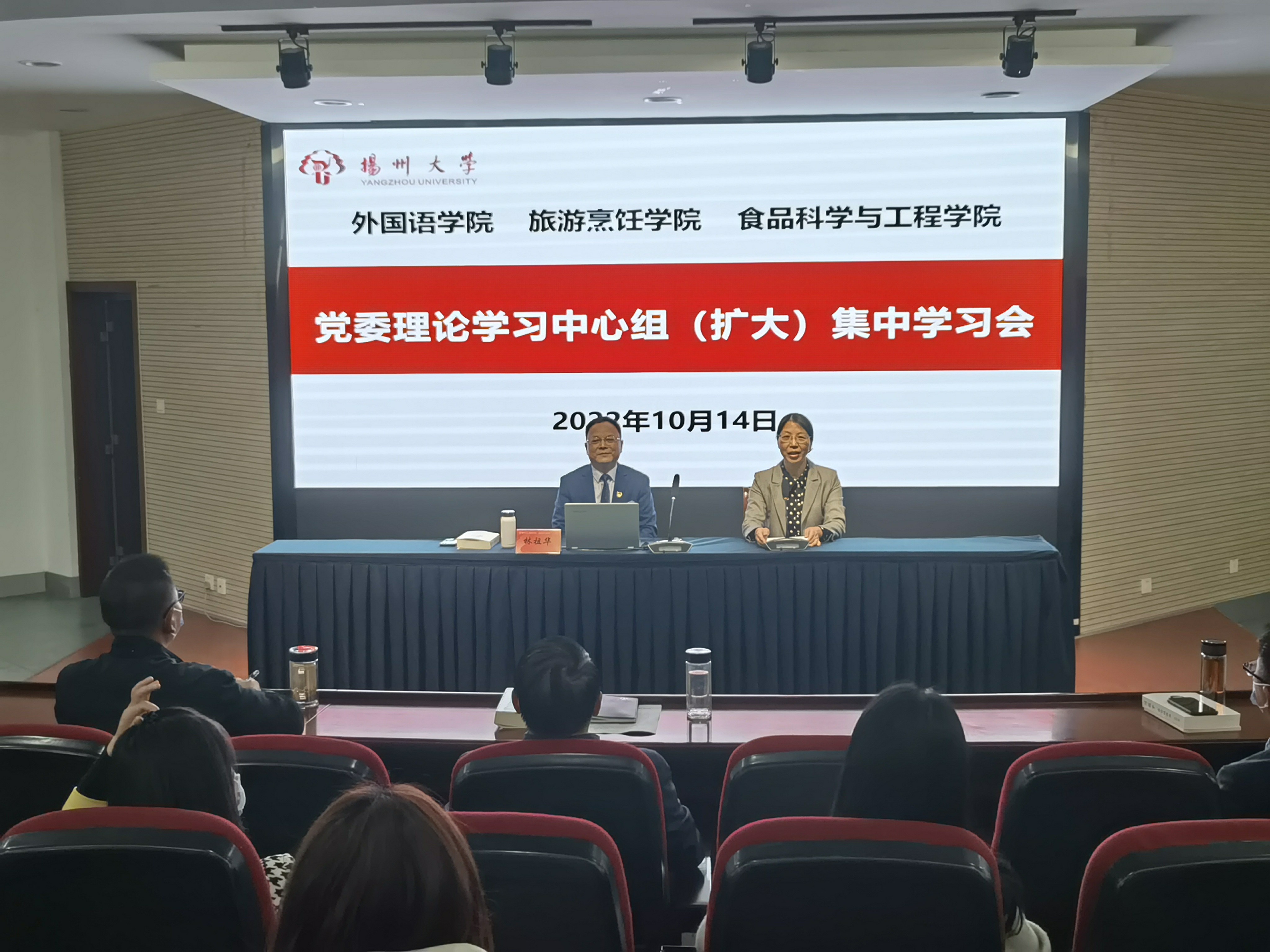 10月14日下午,旅游烹饪学院党委、食品科学与工程学院党委和外国语学院党委在笃行楼N302报告厅举行三院联合党委理论学习中心组(扩大)集体学习会,专题学习《习近平谈治国理政》第四卷。旅游烹饪学院党委书记解小青主持活动。