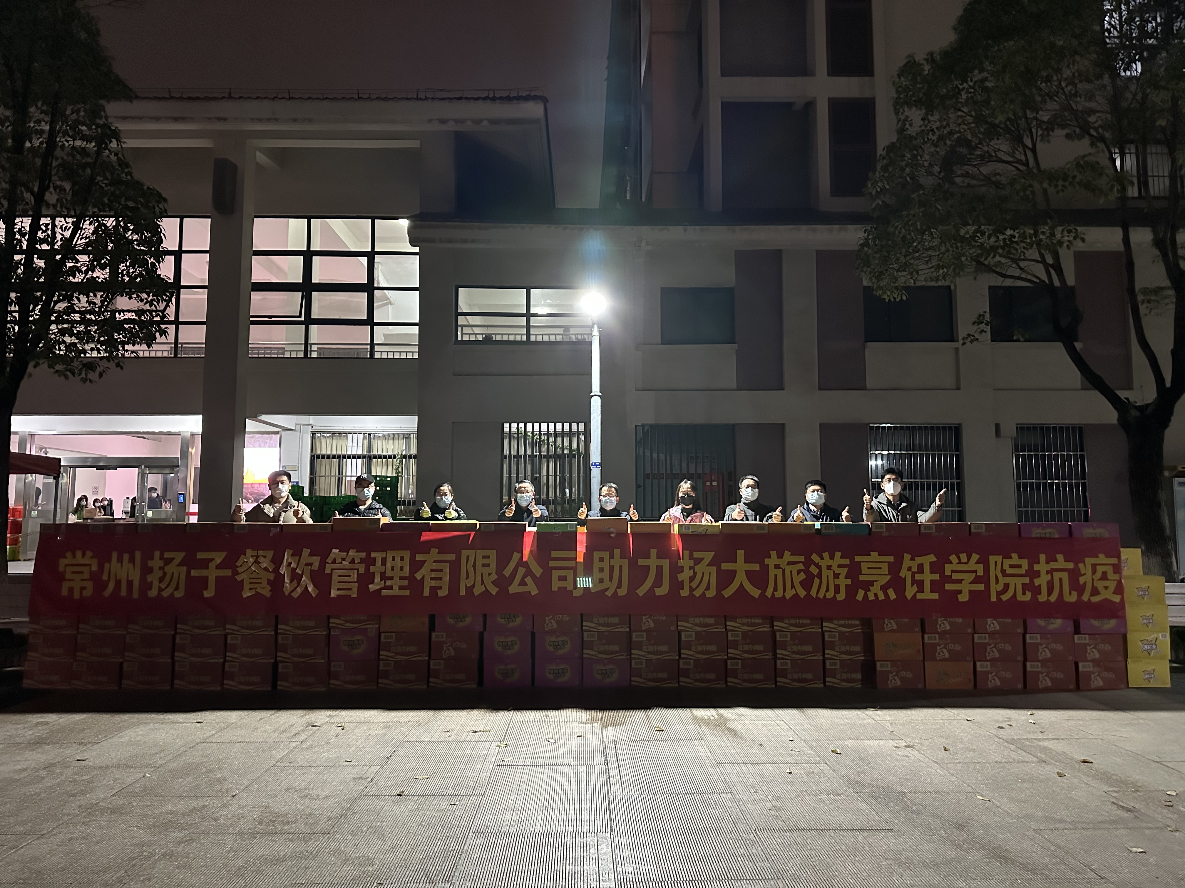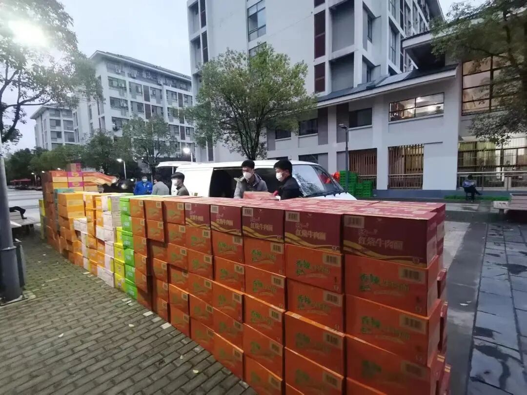 除此之外,众多爱心企业也积极响应,以最快的速度向学校捐赠抗疫物资,他们用战“疫”最强音告诉我们:这场疫情保卫战从来不是一个人的战斗,而是一群人的无畏坚守与逆行!常州扬子餐饮管理有限公司在得知母校爆发疫情后,立即筹备物资,为我院全体学生捐赠了114箱饮料,285箱泡面,解决了同学们的燃眉之急,赢得了同学们的一致喝彩与浓浓谢意。在旅游烹饪学院成立人才培养基金项目多年,扬子餐饮公司每年为学院人才培养资助6万元,以实际行动彰显了企业的社会责任。