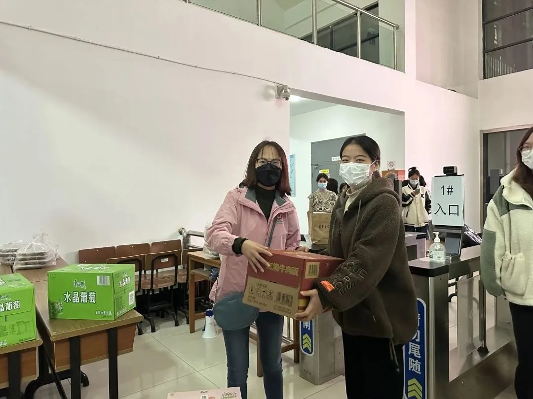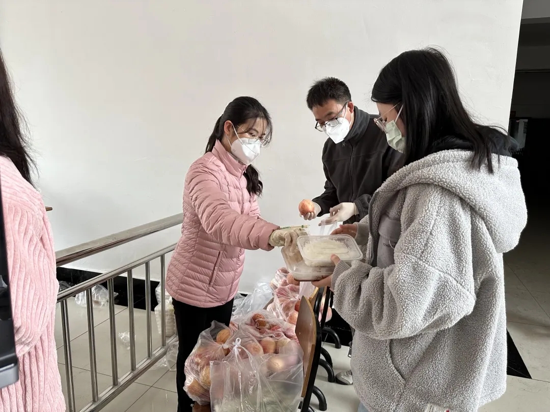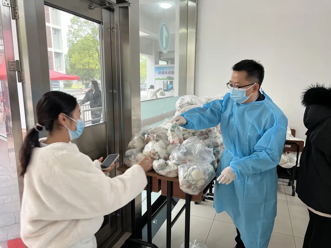 青年教师们在完成线上教学工作后,第一时间奔往抗疫一线,化身为穿梭于人海的白色或蓝色身影,开始核酸采样、装饭、搬运、分发,帮助同学们解决当前所急所困。“老师您好,我是一名考研学生,我们宿舍也有许多考研的资料没来得及拿,是否代取资料呢?”“老师您好,我突发肠胃炎,上吐下泻,可能需要就医,您能带我去吗?”众多纷杂的求助都得到了老师们及时的解决。