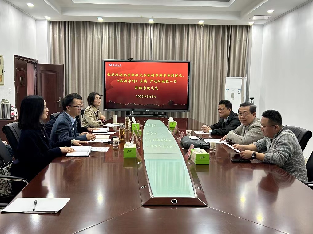 3月8日上午10:30,北京联合大学旅游学院常务副院长、《旅游学刊》主编严旭阳教授,学科科研办公室主任杨哲,旅游规划与发展研究院研究员张金山一行来我院交流。座谈会由院长侯兵主持。