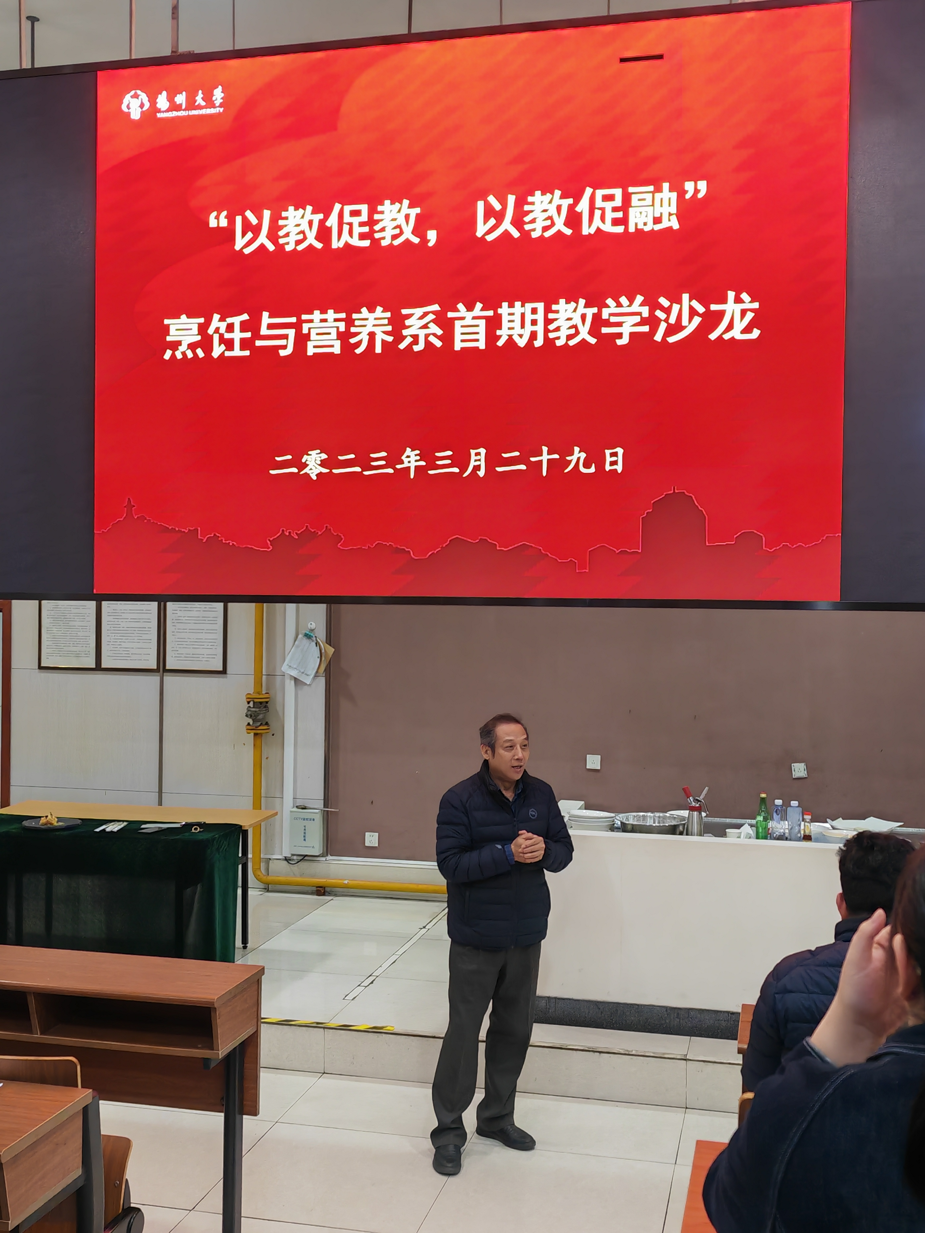 为进一步促进理论和工艺的融合发展,3月29日,烹饪与营养系举办了主题为“以教促教,以教促融”的教学沙龙。沙龙由系主任唐建华主持,陈志炎副教授交流展示粤菜“蜂窝花胶”的制作技艺。院党委书记解小青出席观摩并讲话。