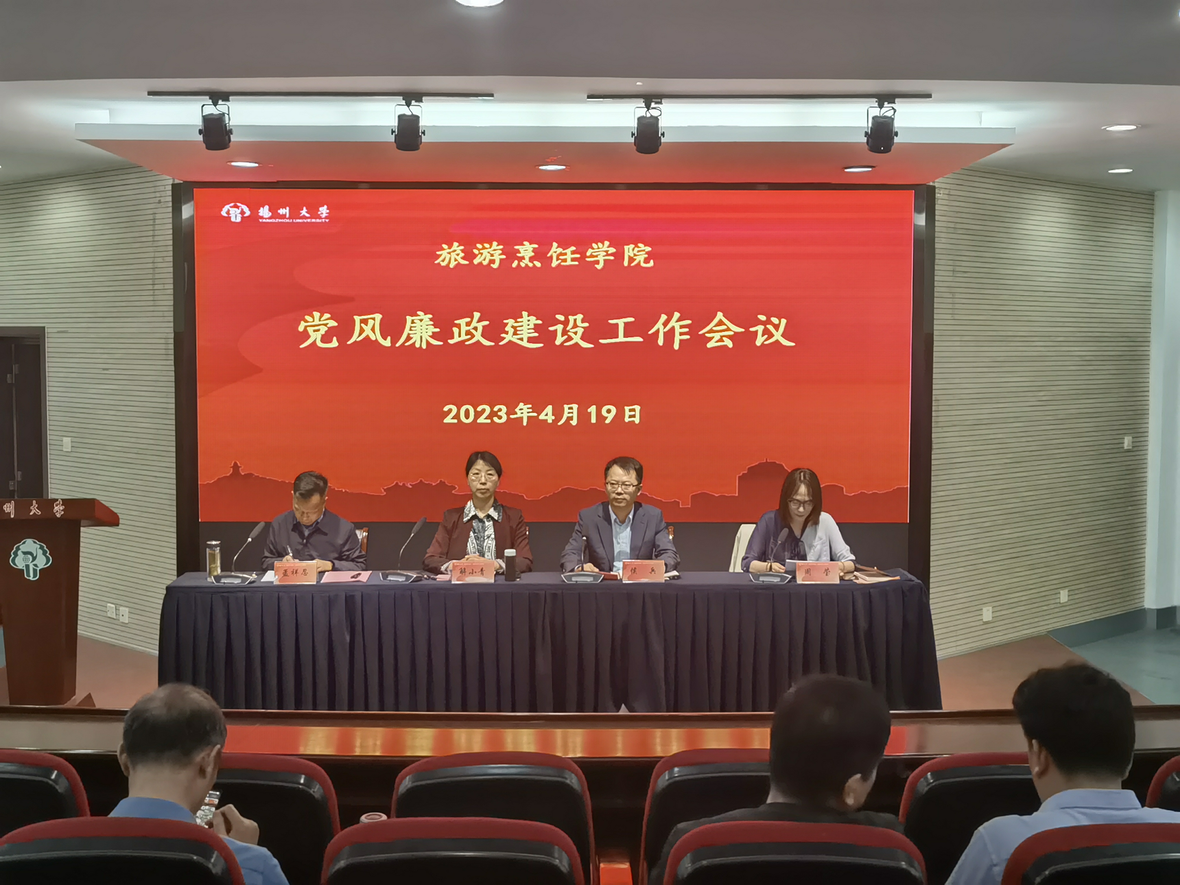 4月19日下午,旅游烹饪学院在扬子津校区笃行楼N302报告厅举行2023年党风廉政建设工作会议。院党委书记解小青到会讲话,院长侯兵主持会议。