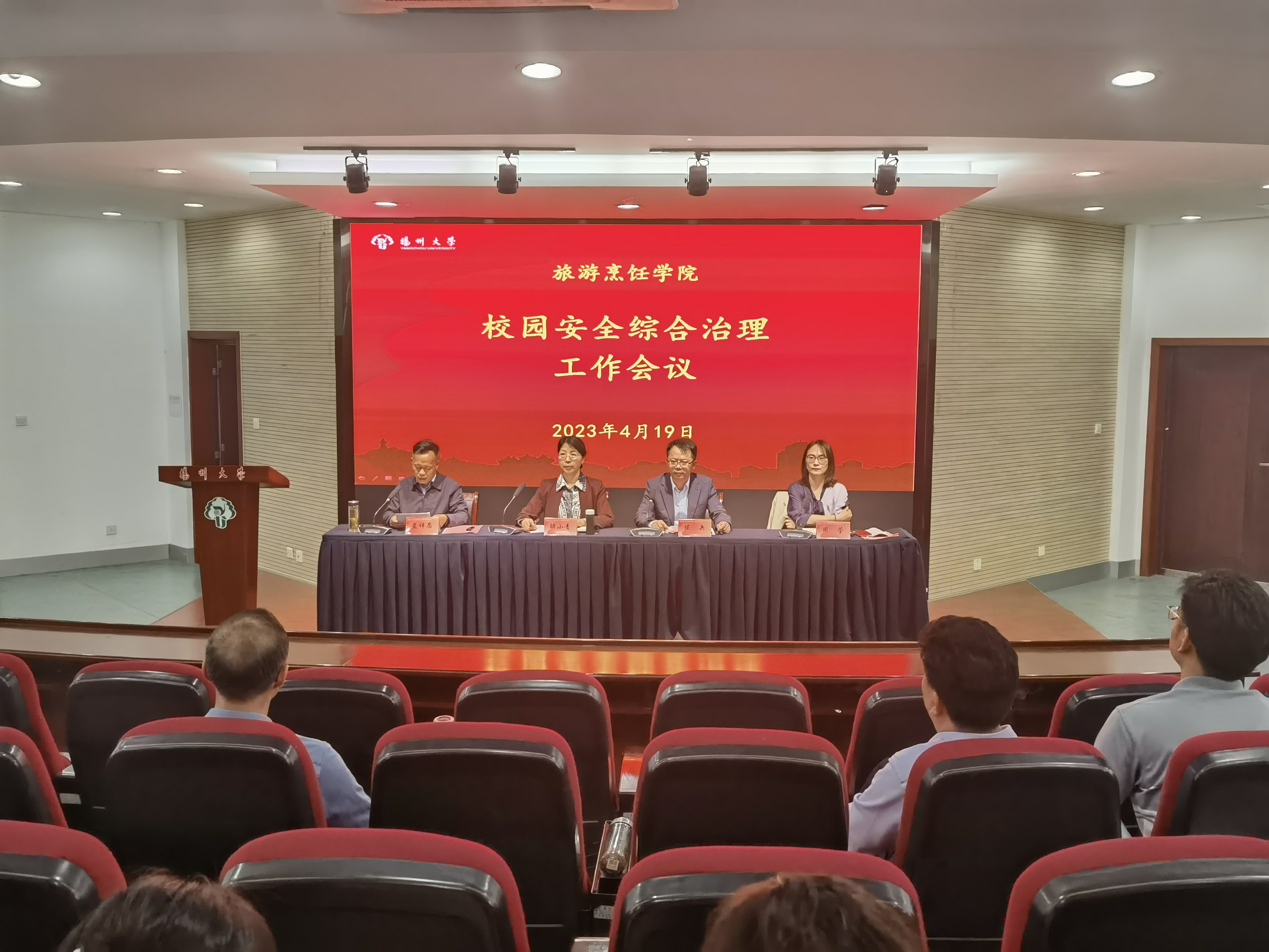 4月19日下午,旅游烹饪学院在扬子津校区笃行楼N302报告厅举行2023年校园安全综合治理工作会议。学院领导班子成员、全体党员教职工、学生代表参加了会议。院党委书记解小青到会并讲话,会议由院长侯兵主持。