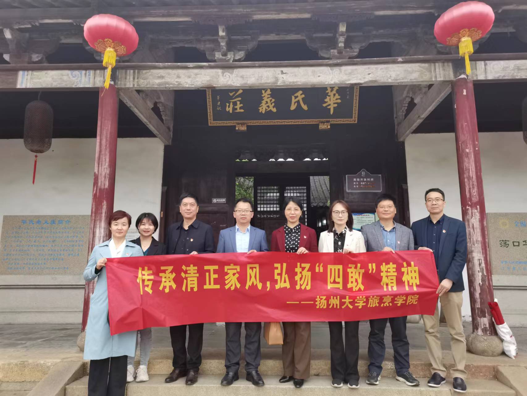 为深入开展学习贯彻习近平新时代中国特色社会主义思想主题教育,贯彻落实党中央《关于加强新时代廉洁文化建设的意见》要求,充分发挥廉洁文化的熏陶和导向作用,弘扬崇廉尚洁的校园风尚,营造风清气正的育人环境,5月7日,旅烹学院党委领导班子赴江苏省廉政教育基地——荡口古镇王莘故居、华氏义庄,开展“传承清正家风,弘扬‘四敢’精神”党风廉政建设主题活动,将廉政教育与主题教育相结合,进一步增强党员干部廉洁自律意识,切实加强廉政队伍建设,巩固党风廉政教育成果。