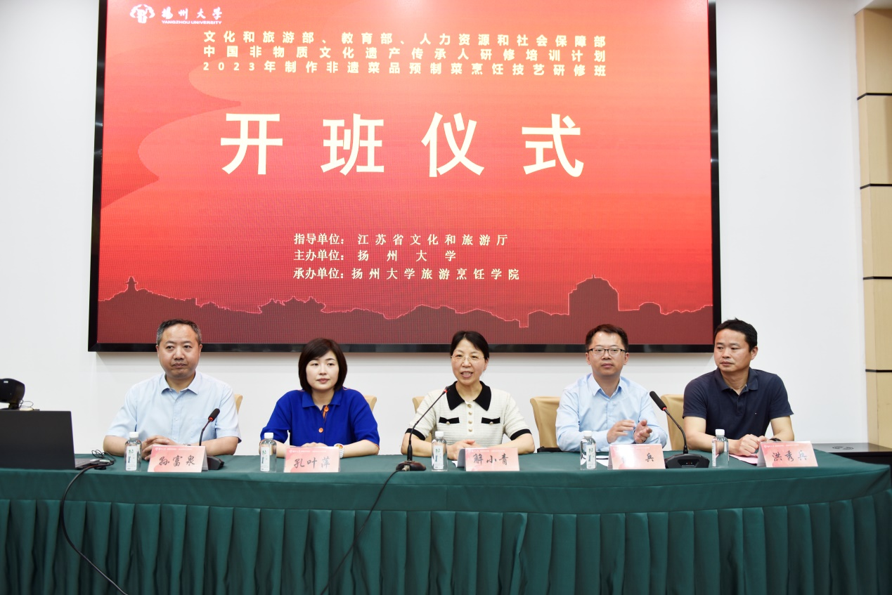 5月16日,由江苏省文化和旅游厅指导,扬州大学主办、旅游烹饪学院承办的“中国非物质文化遗产传承人研修培训计划——制作非遗菜品预制菜烹饪技艺研修班”正式开班。省文化和旅游厅非物质文化遗产处一级主任科员孔叶萍出席活动并讲话。