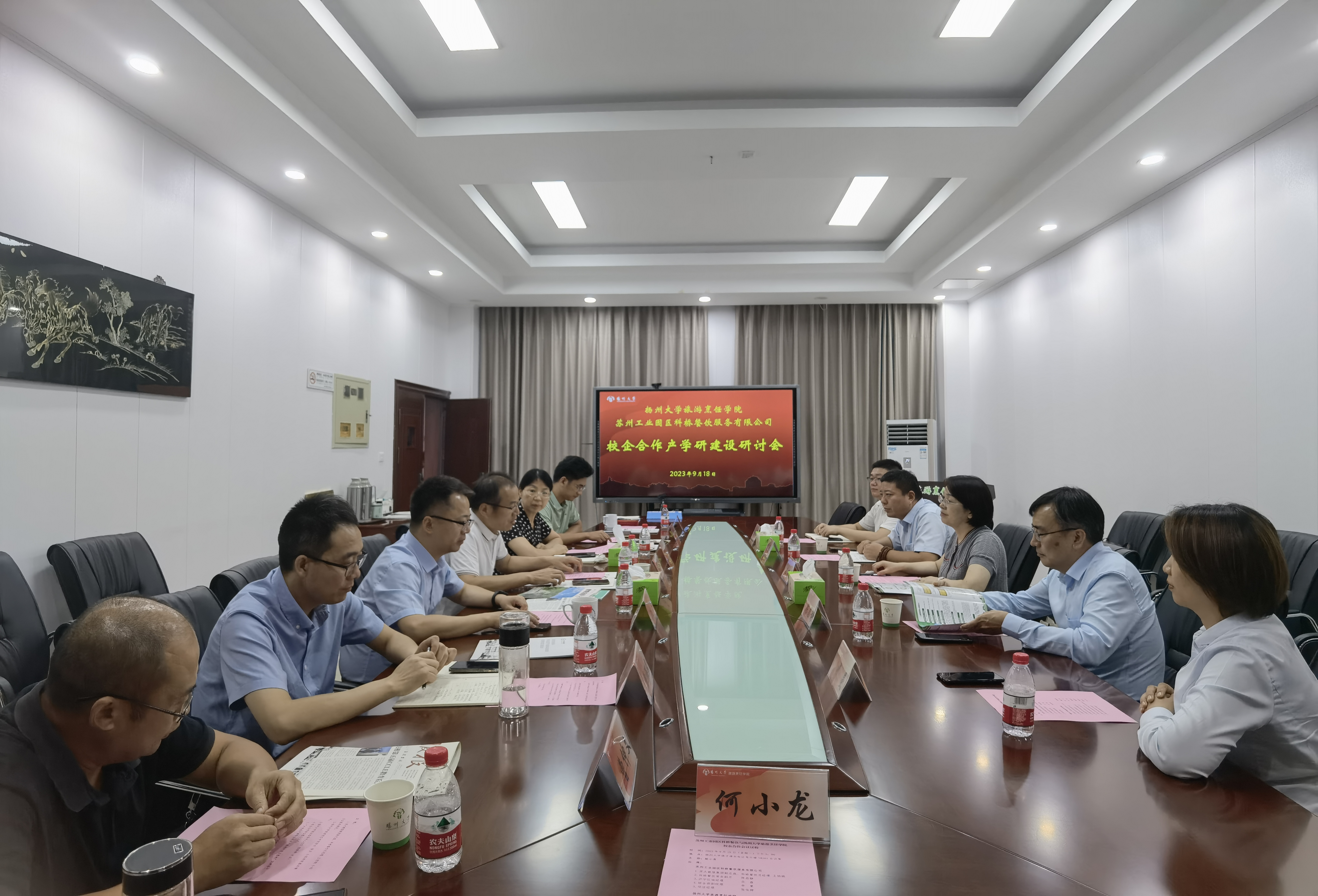 9月18日,学院与苏州工业园区科桥餐饮服务有限公司在笃行楼三楼会议室开展校企合作产学研建设研讨交流。苏大教服集团副总裁、科桥餐饮总经理王丽晓,常务副总陈昌静,区域经理吕磊,综合部副经理李曼,项目经理张佳卿,扬州大学就业指导中心主任陈轶群,院长侯兵,学院党委副书记周莹,烹饪与营养教育系主任唐建华,烹饪与营养教育系教工党支部书记章海风,烹饪与营养教育系教师曹仲文、何小龙等出席会议,学院党委书记解小青主持会议。