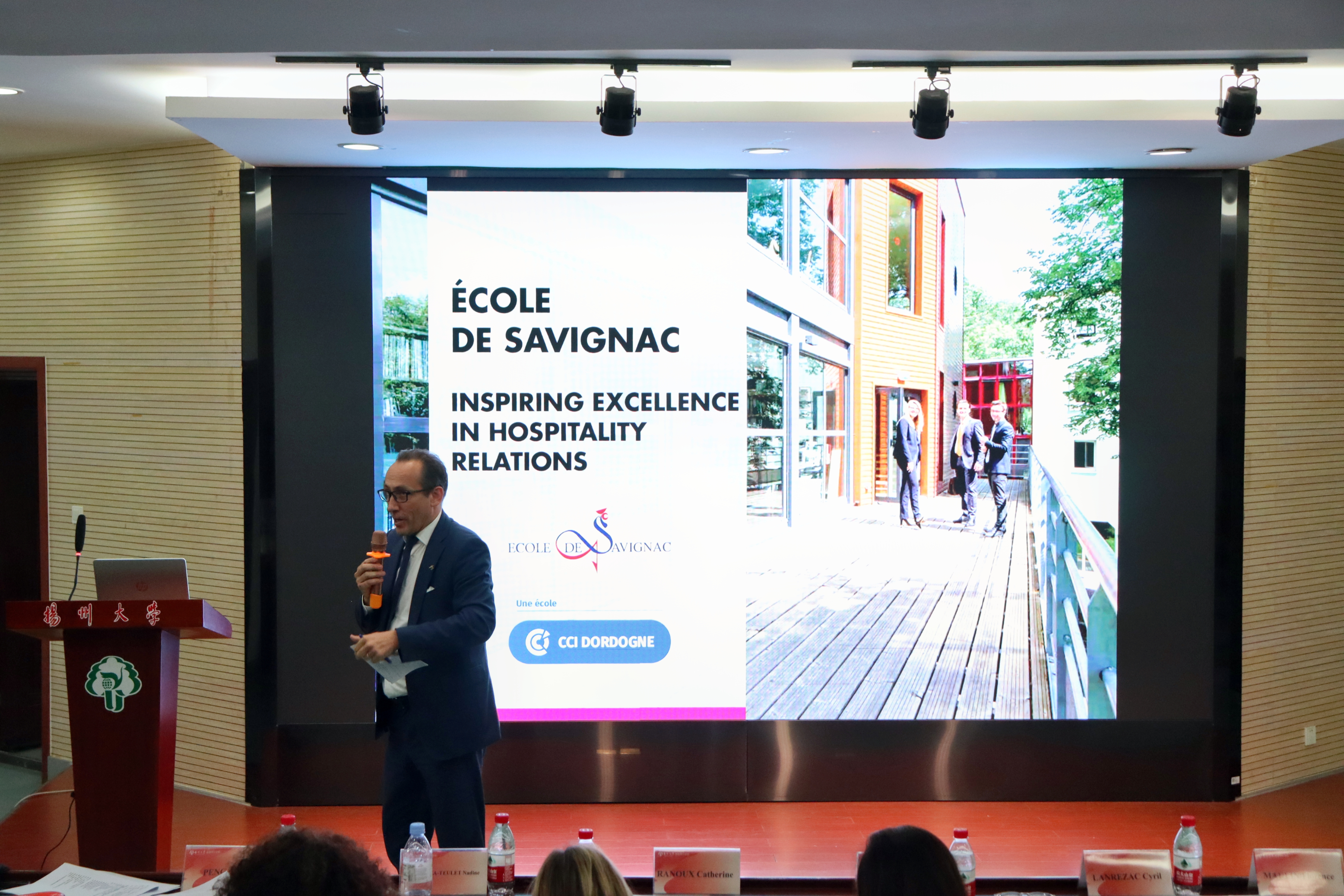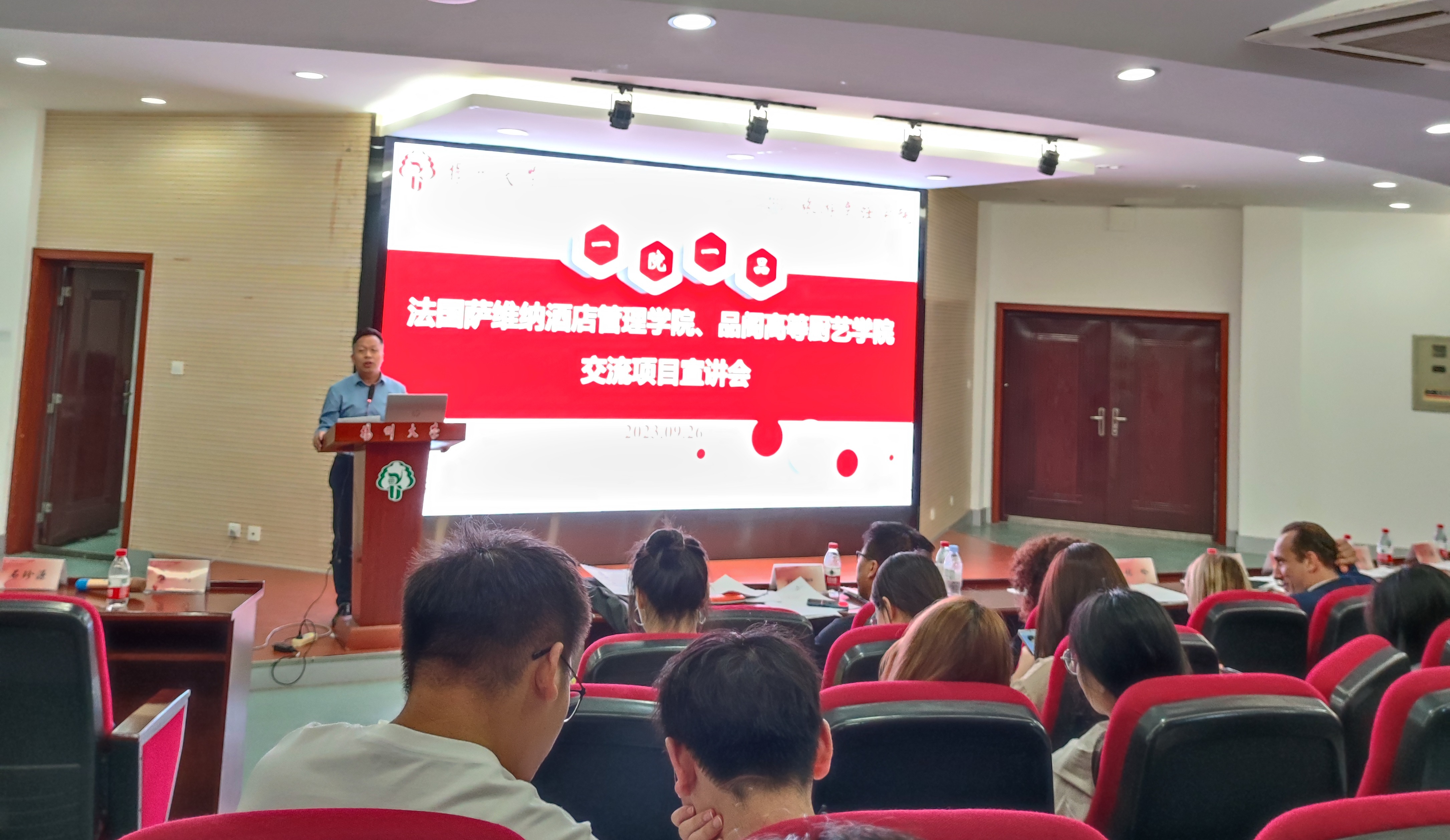 期间,双方分别就各自办学情况做了简要介绍,并就中法联合培养事宜达成一致。在法国萨维纳酒店管理学院、品阁高等厨艺学院交流项目宣讲会上,副院长孟祥忍对法方友人的到来表示热烈欢迎,并对双方未来在人才培养、国际交流等方面的进一步合作充满期待。宣讲会吸引了百余名学生前来参加,现场气氛活跃、互动频频。