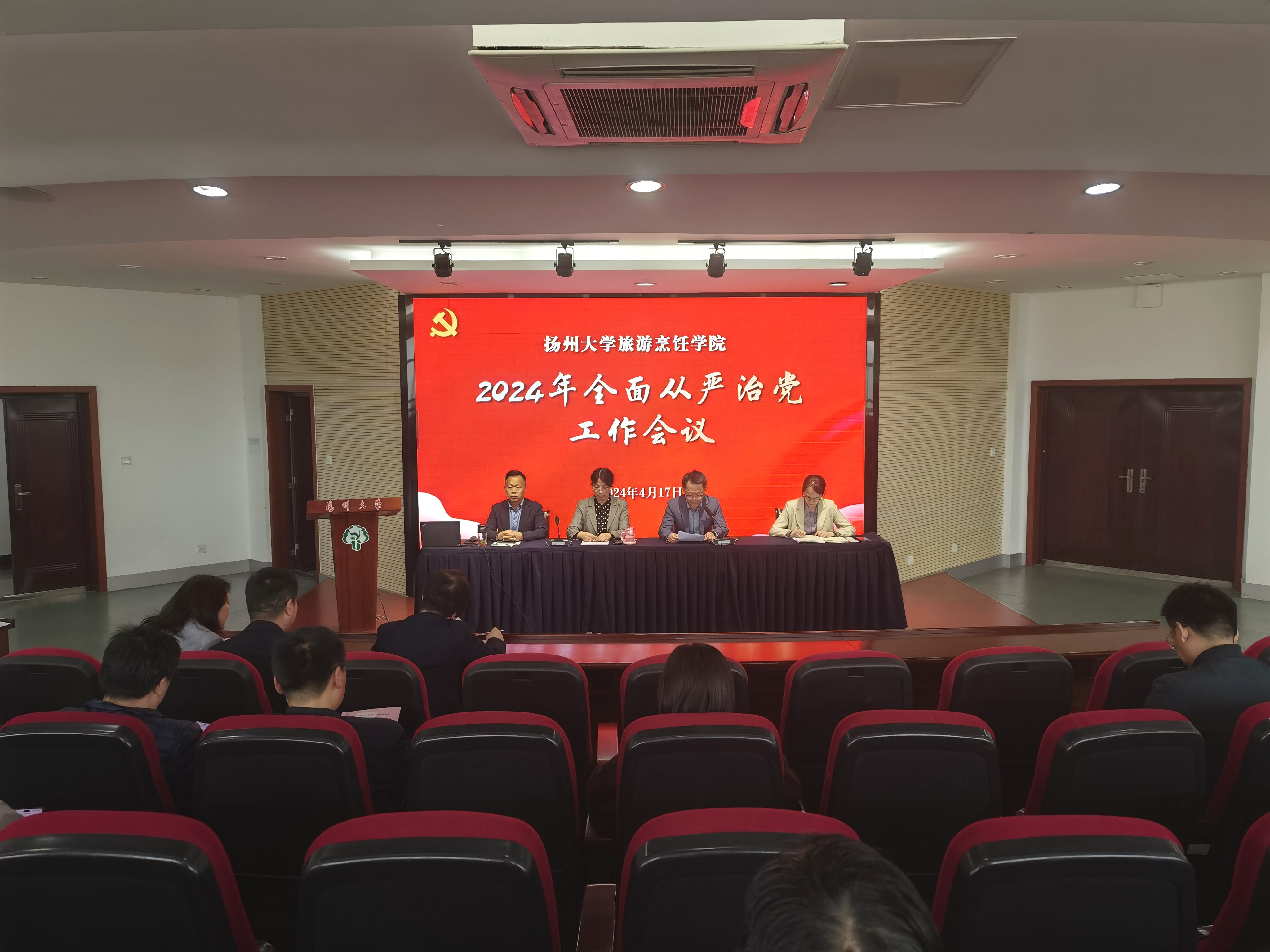 4月17日下午,学院在扬子津校区笃行楼N302报告厅举行2024年全面从严治党工作会议。院党委书记解小青出席会议并讲话,院长侯兵主持会议。