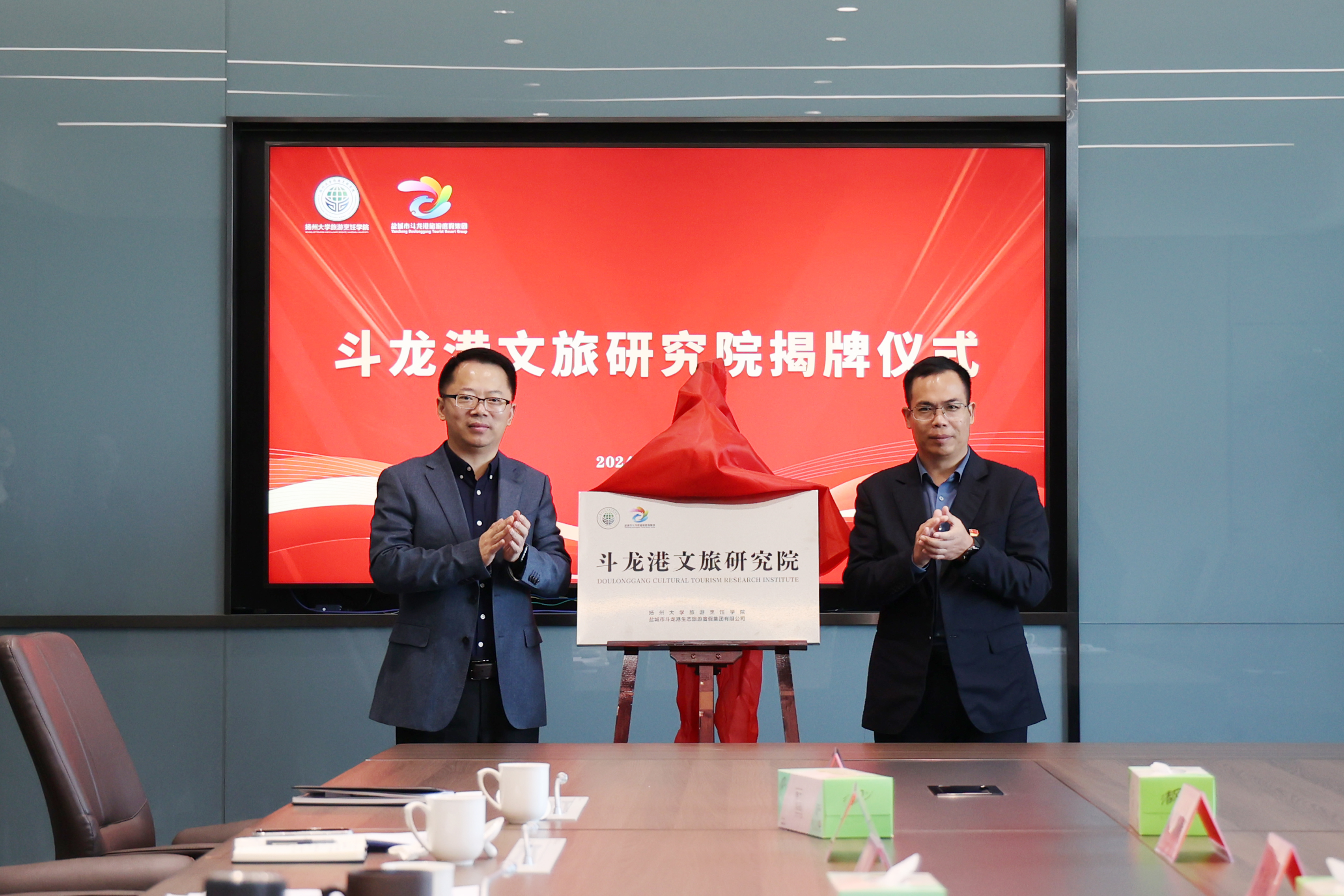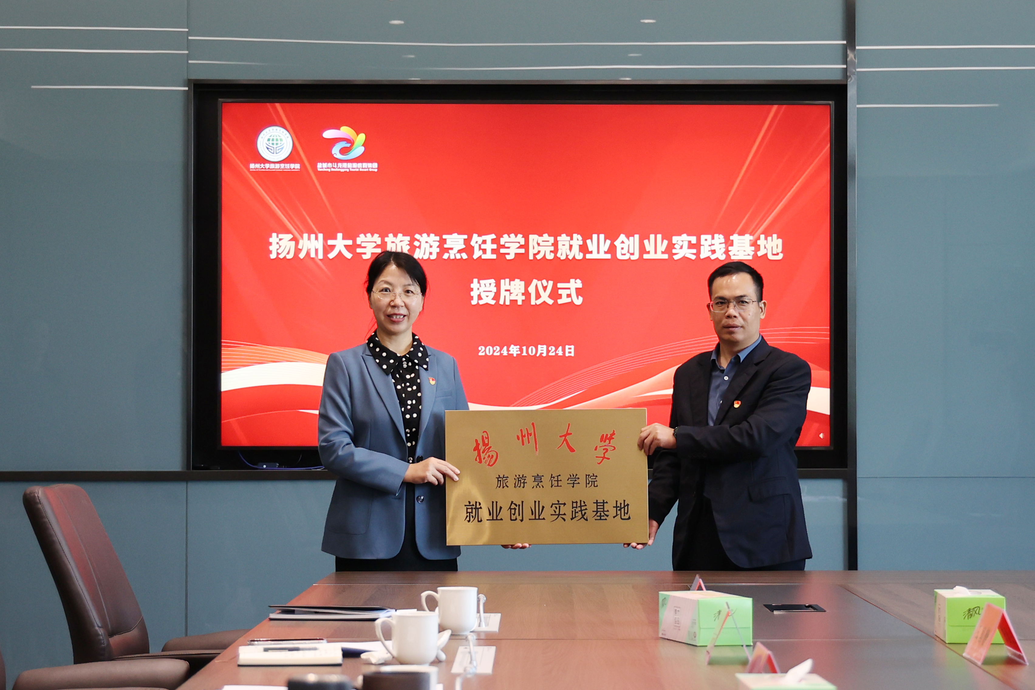 随后,双方举行了文旅产业研究院揭牌仪式、“扬州大学旅游烹饪学院就业创业实践基地”铜牌授予仪式。现场,双方围绕菜品研发、人才培养输送、科研项目合作、酒店业务培训等议题进行了深入讨论,为确保合作取得实质性成效探索新模式、新路径。