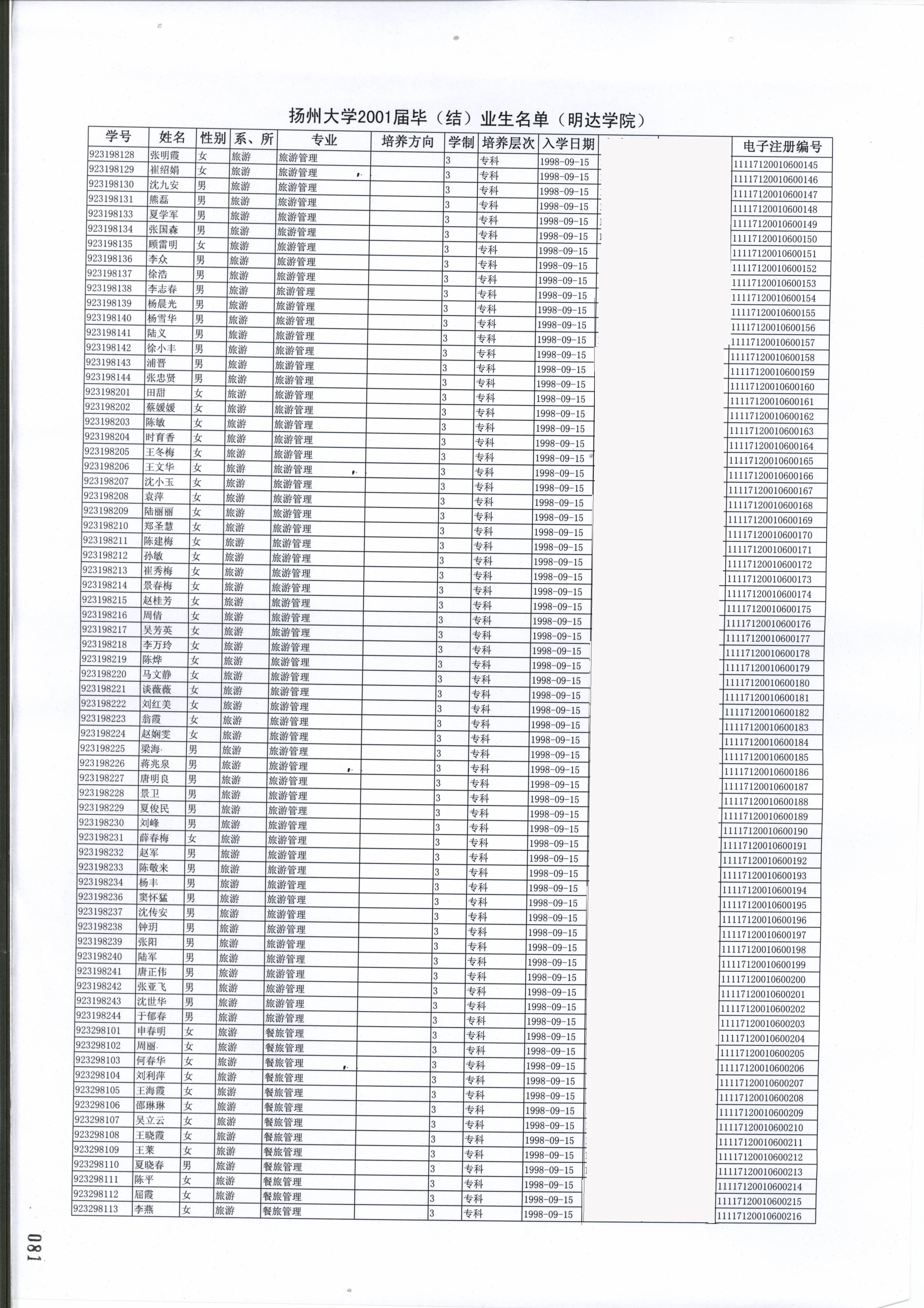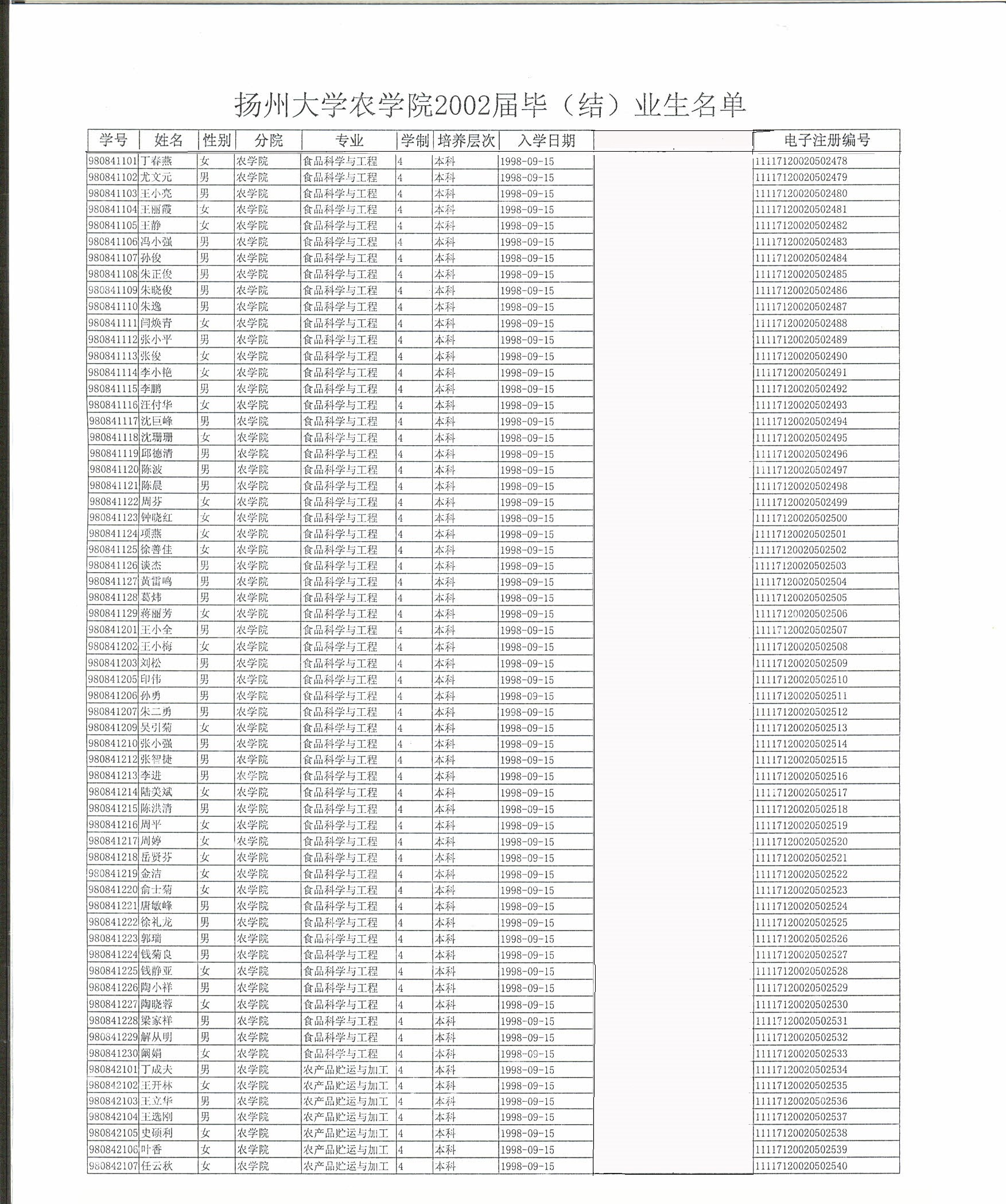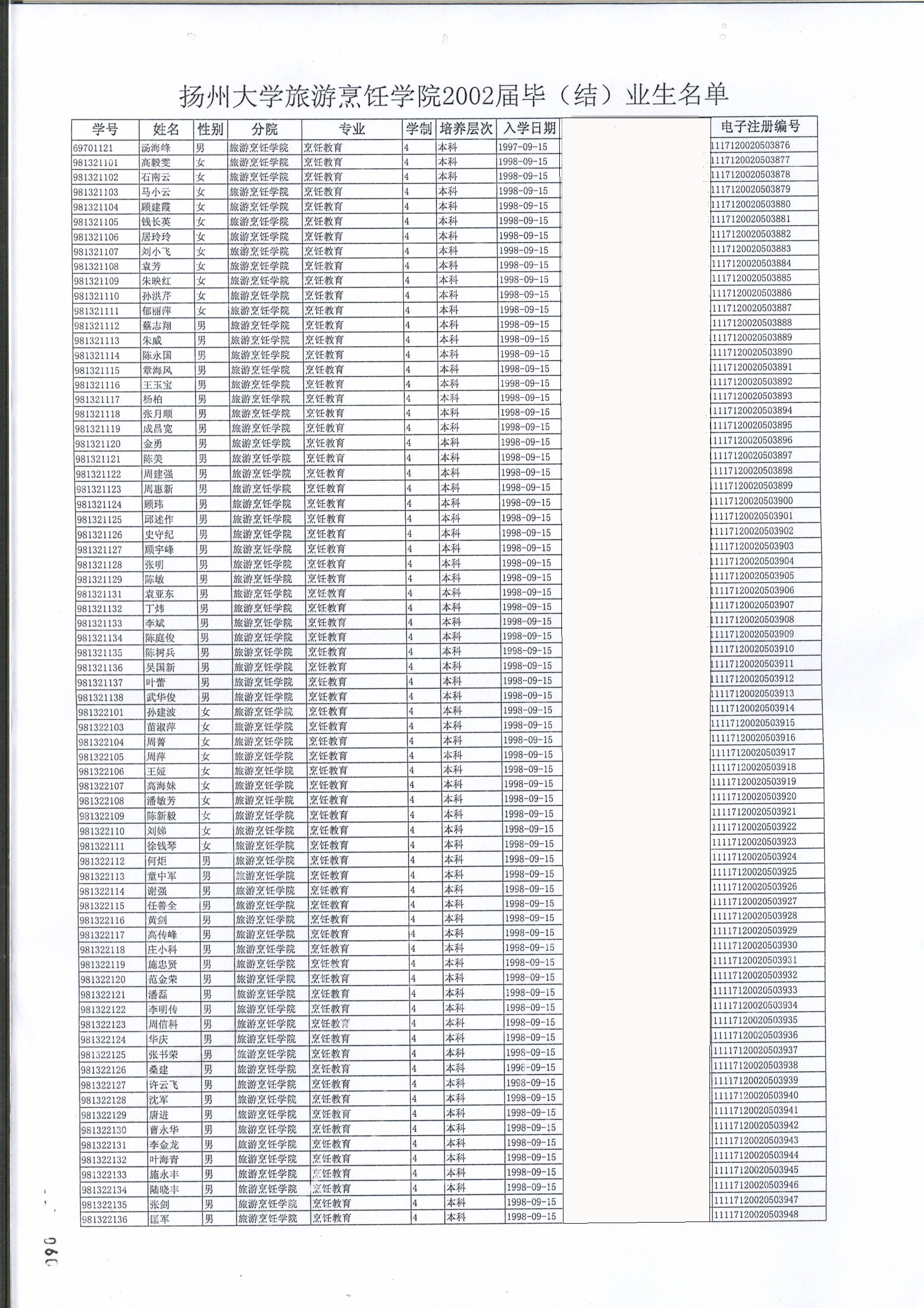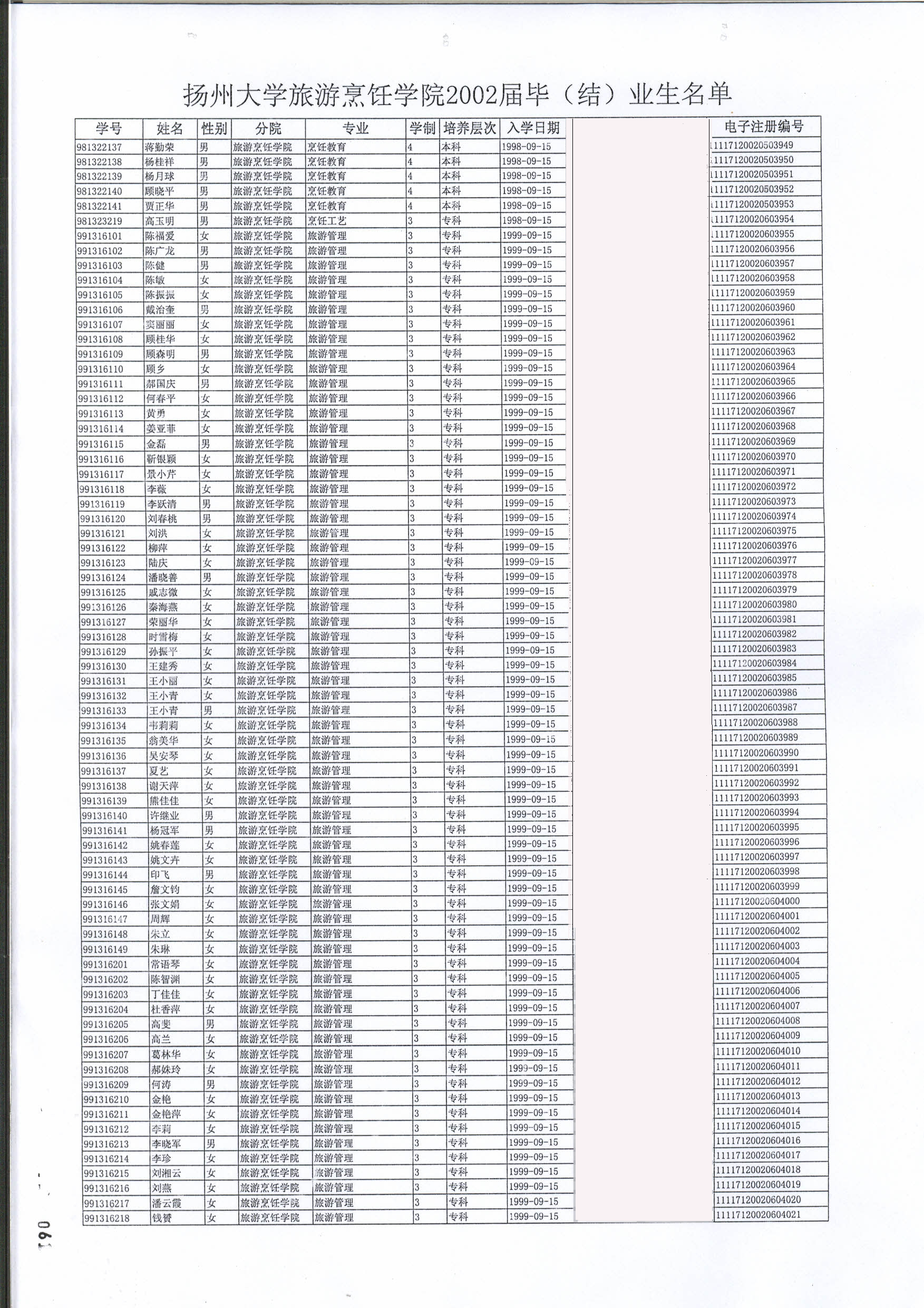 1998级烹饪教育(本)+1998级烹饪工艺(专)