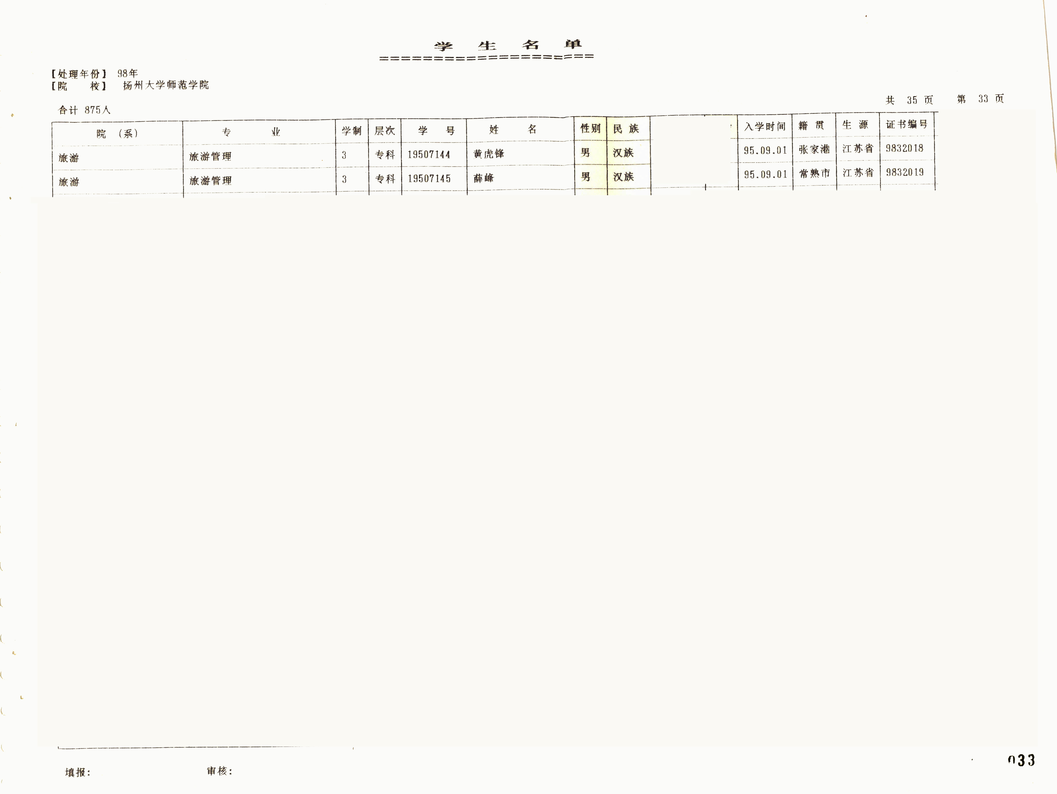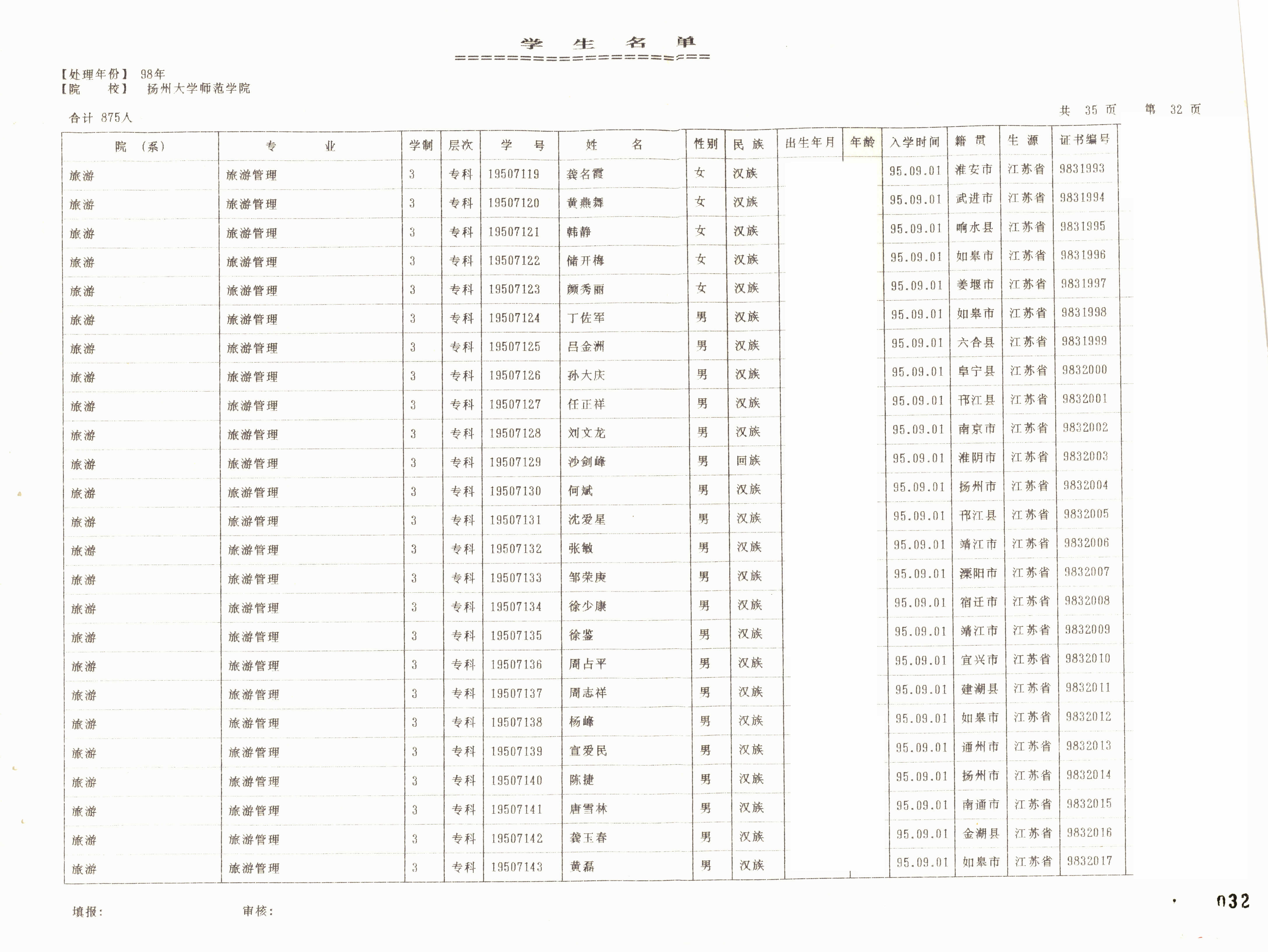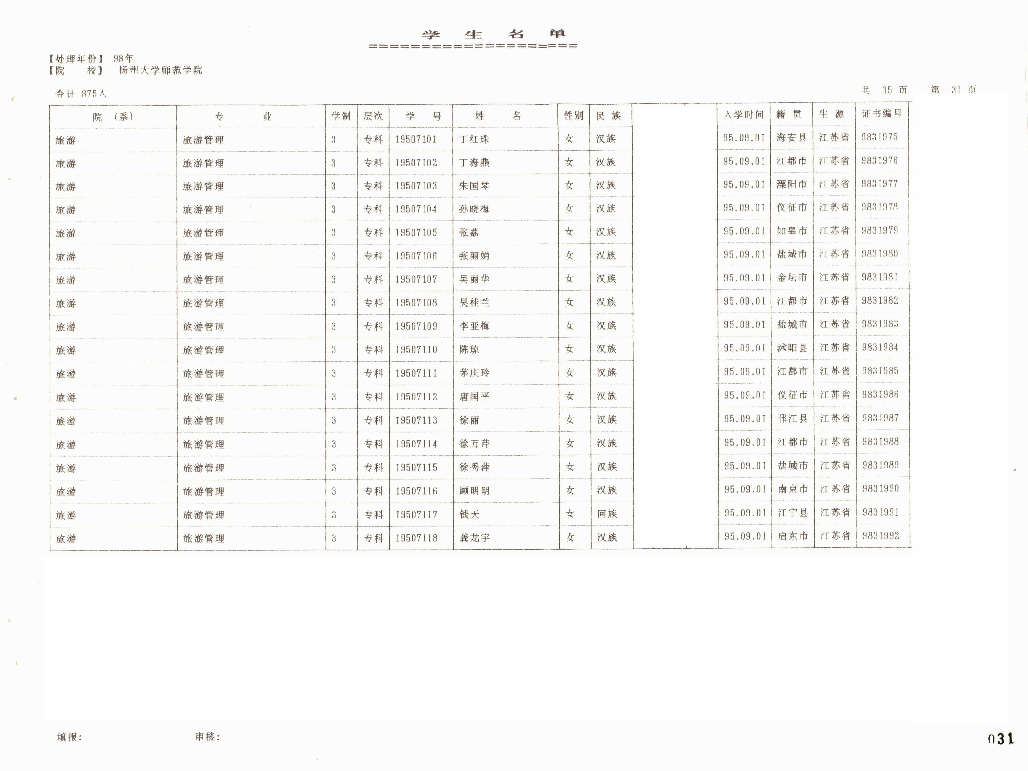 1995级旅游管理(专)
