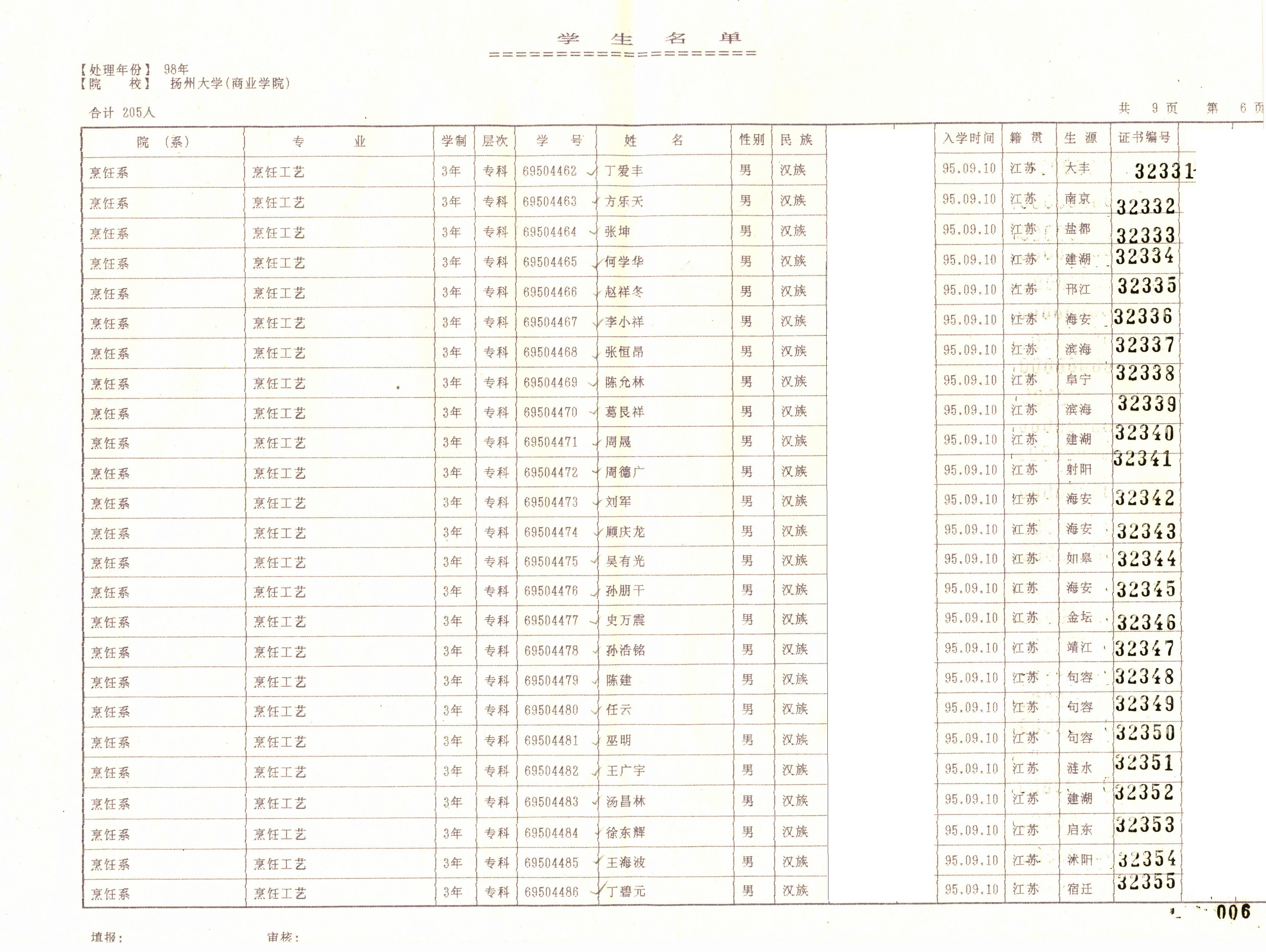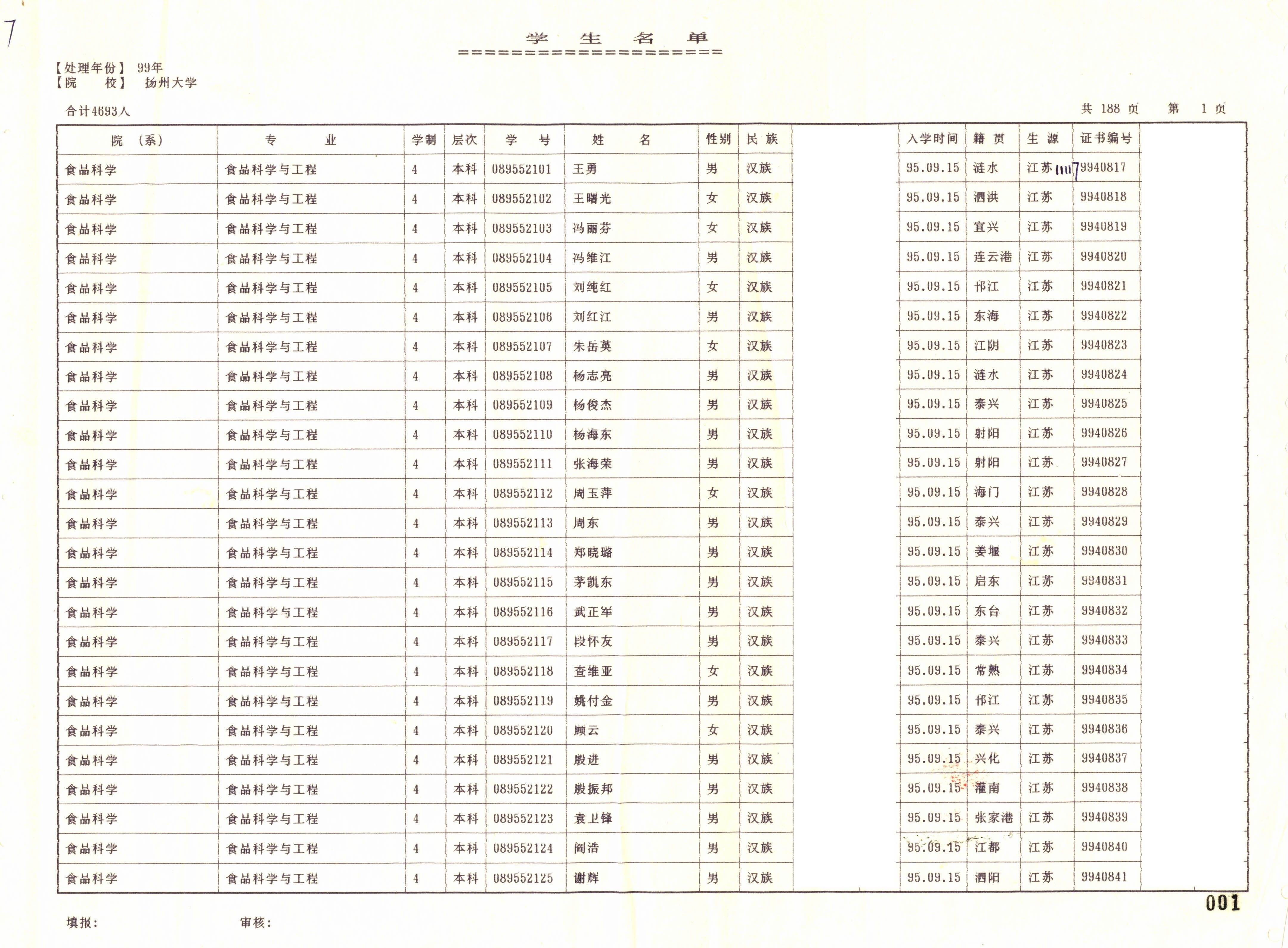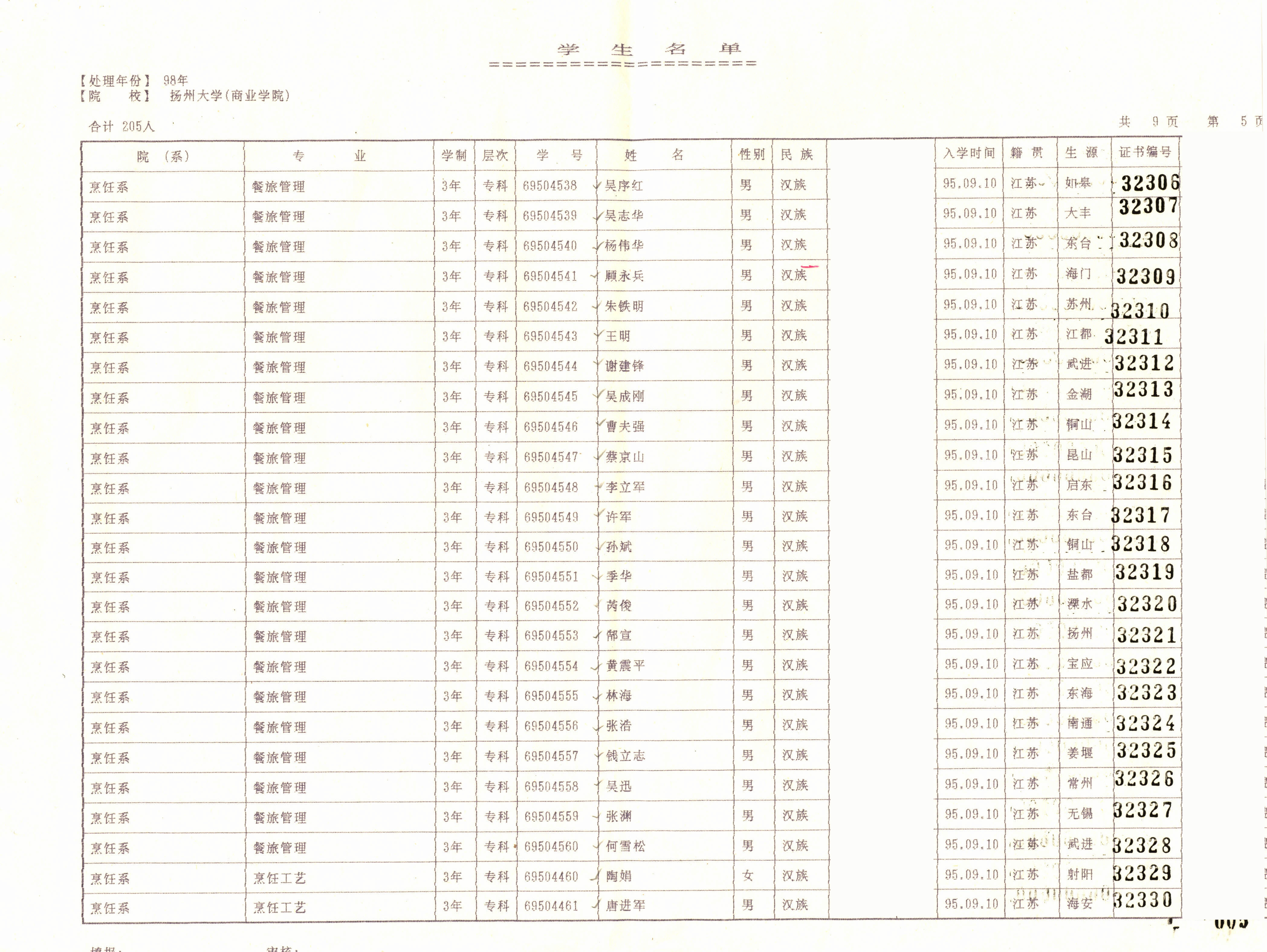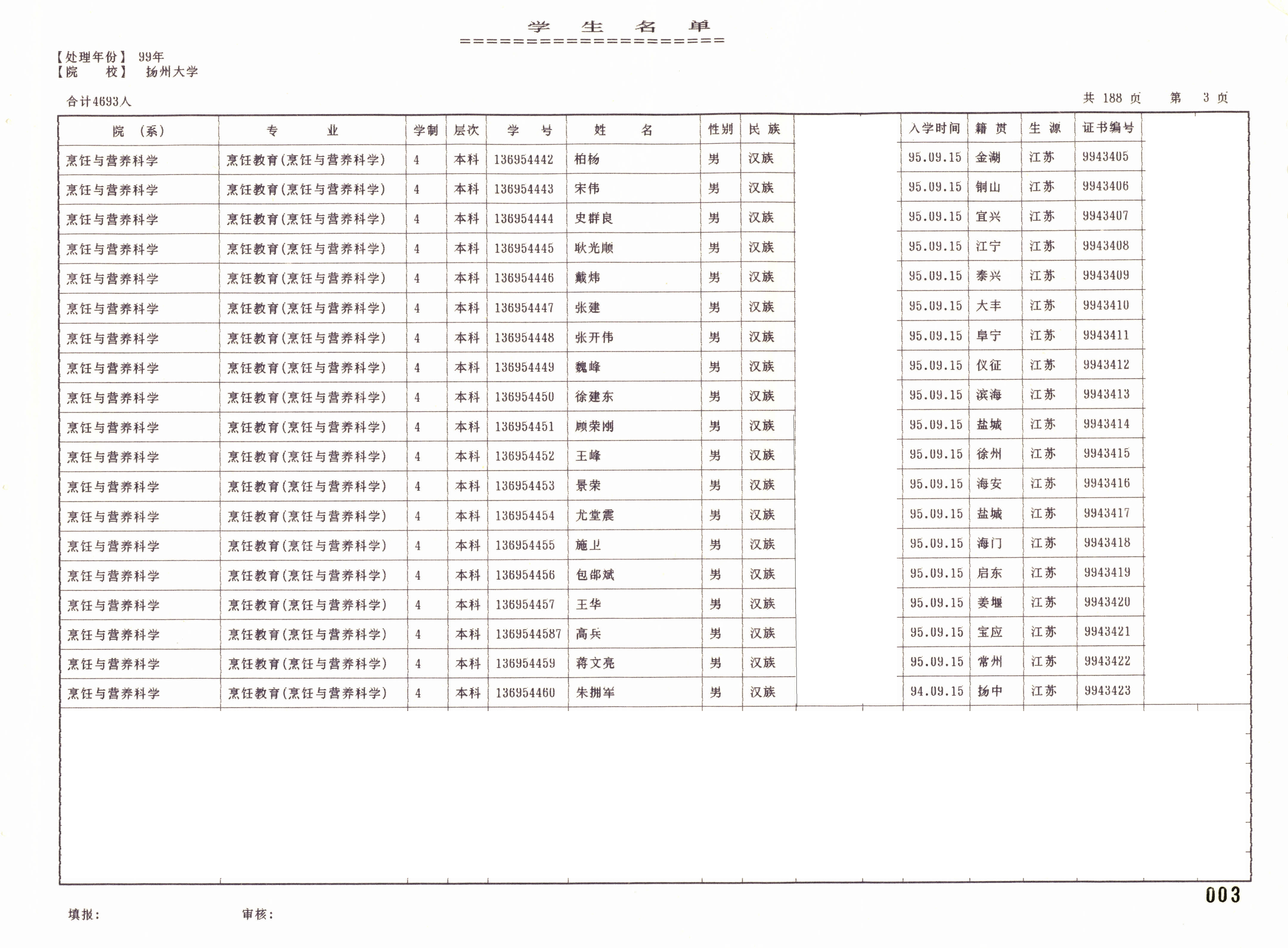 1995级食品科学与工程(本)+1995级烹饪教育(烹饪与营养科学)(本)