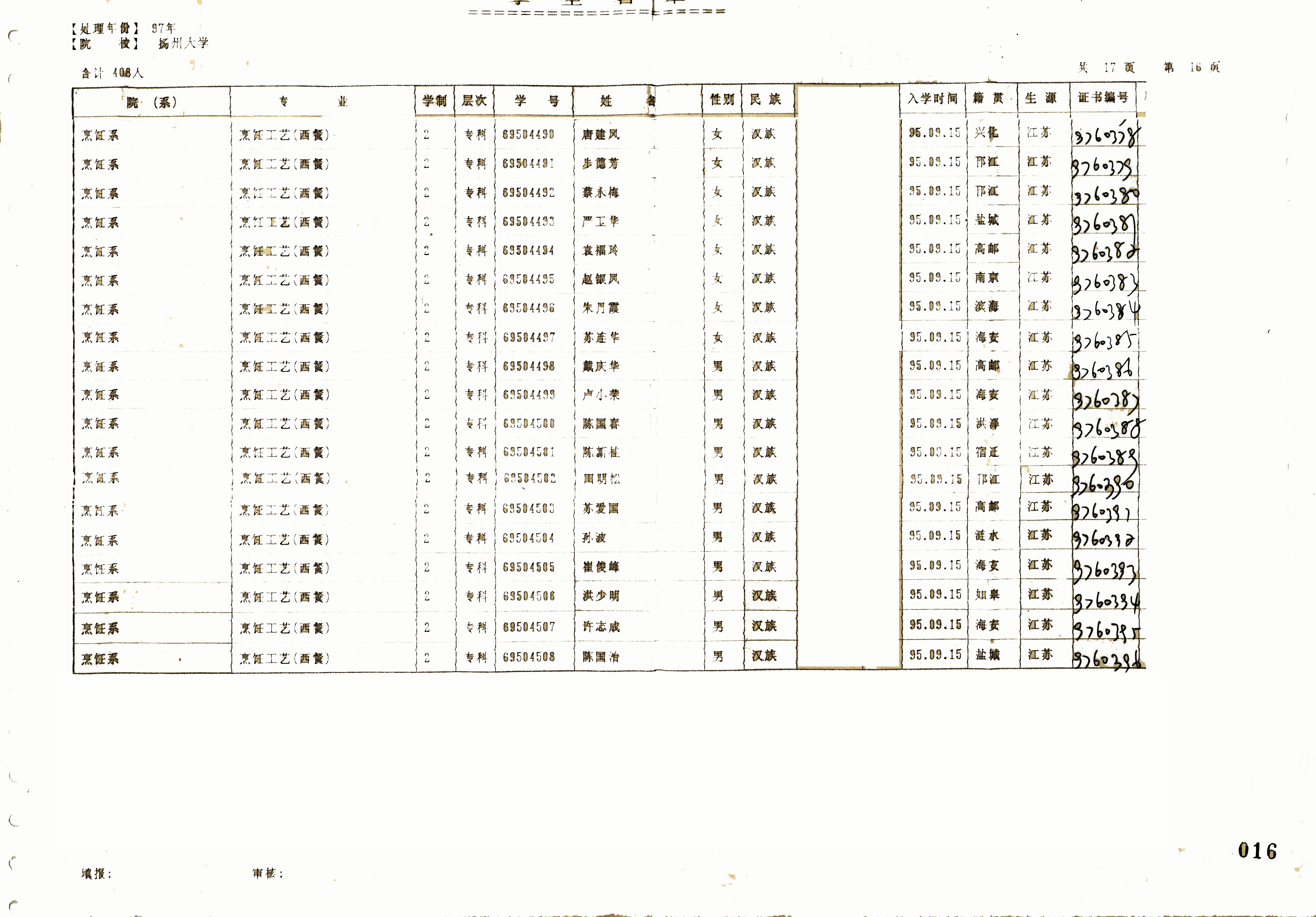 1995级烹饪教育(烹饪与营养科学)(本)