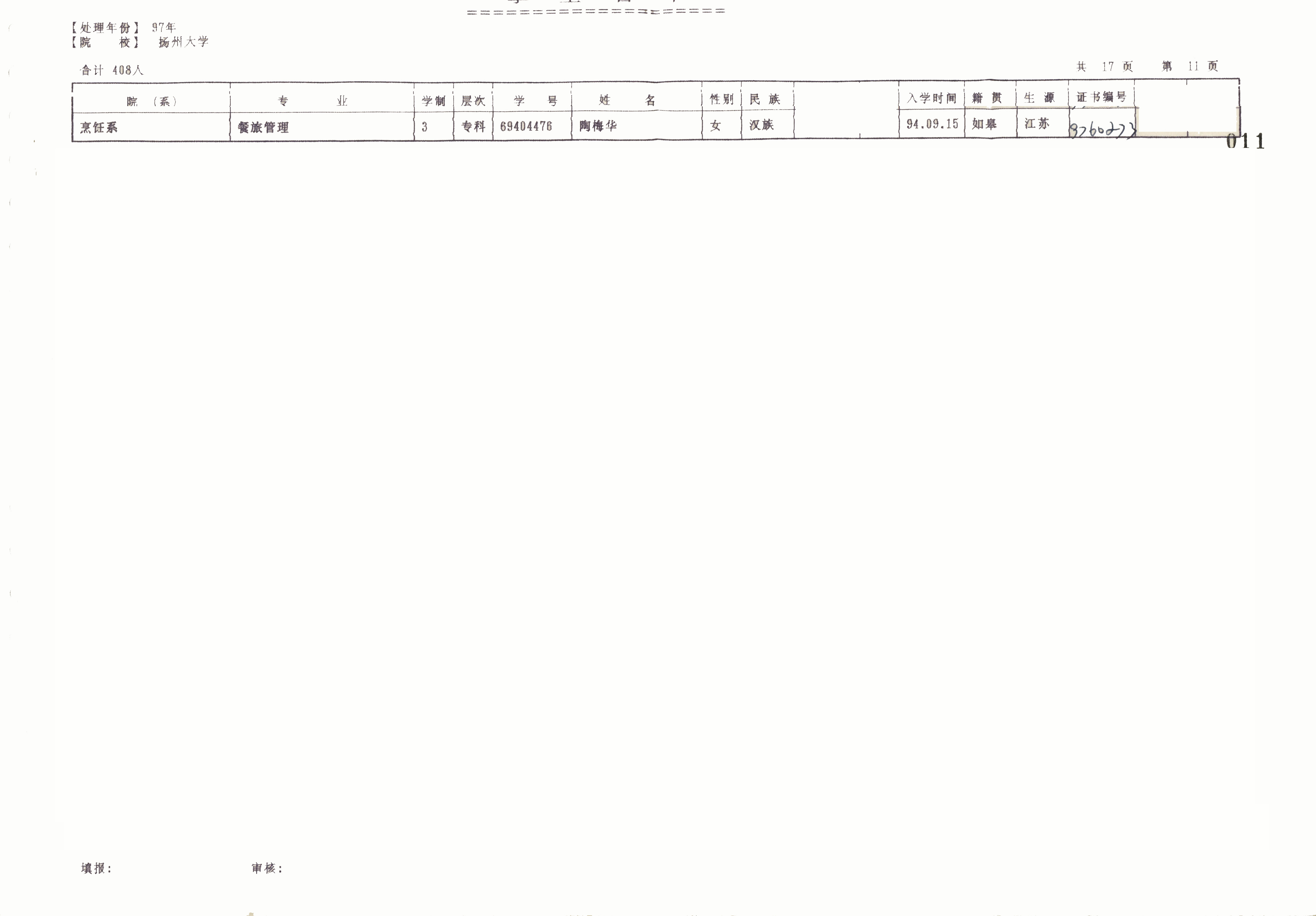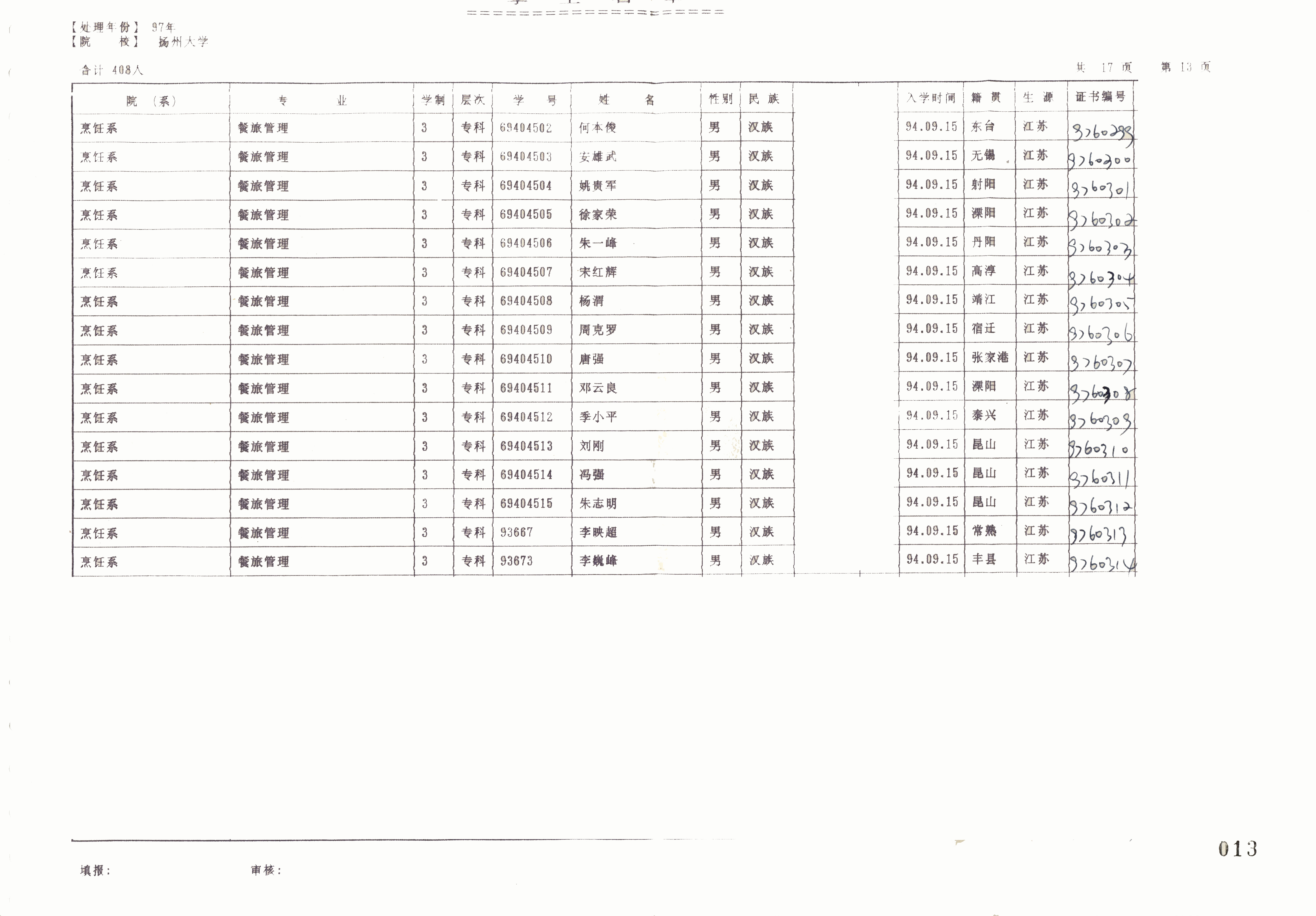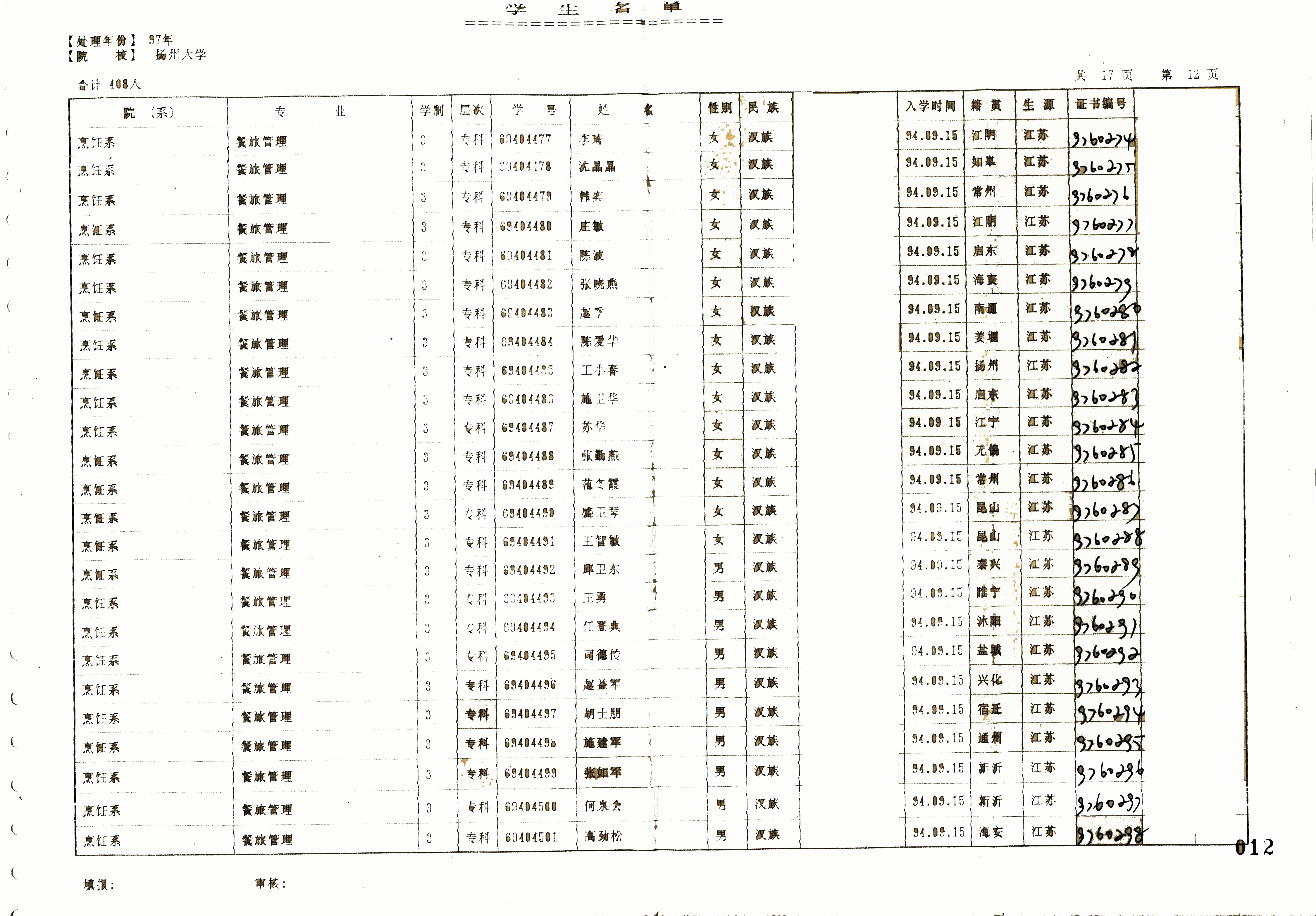 1994级餐旅管理(专)