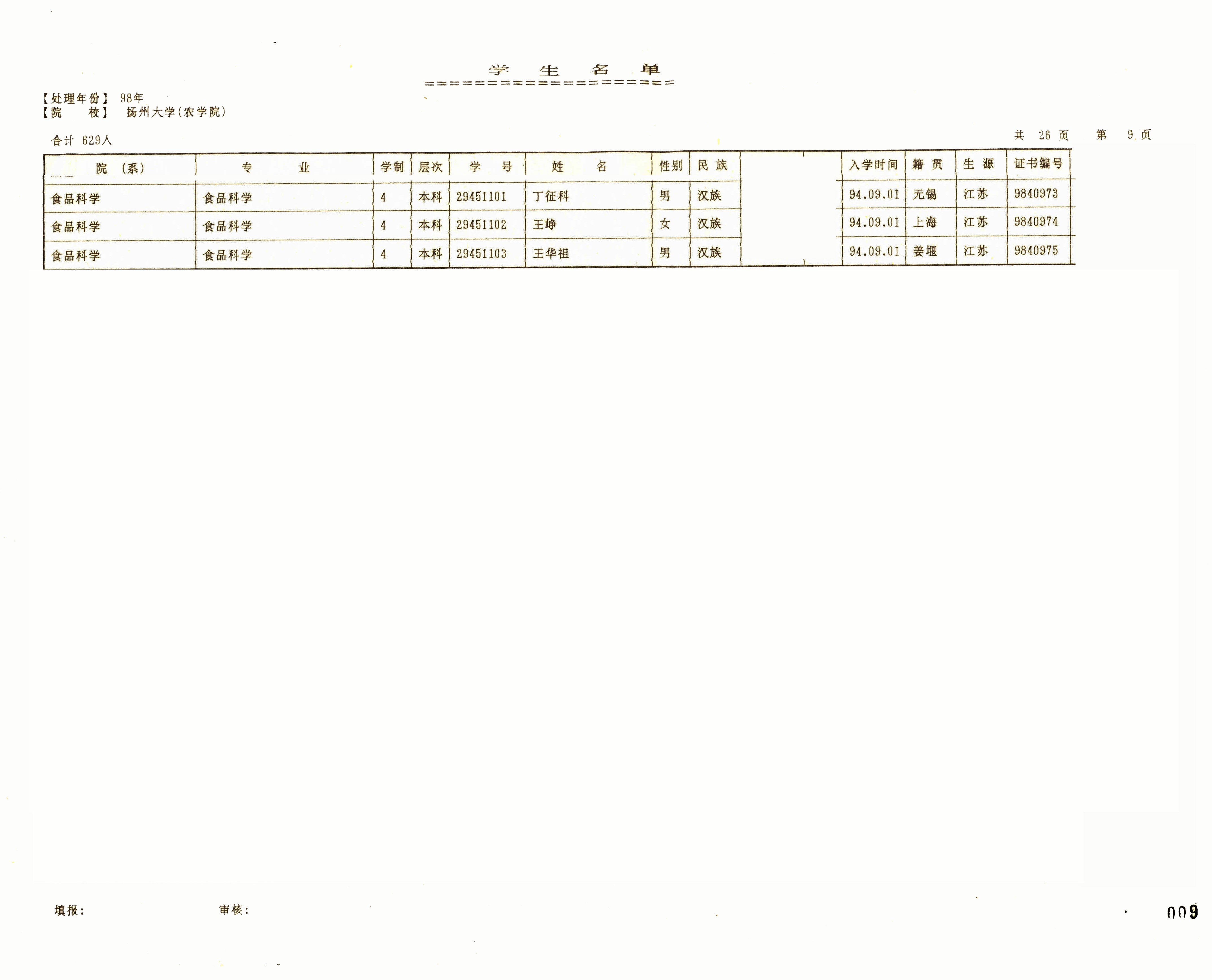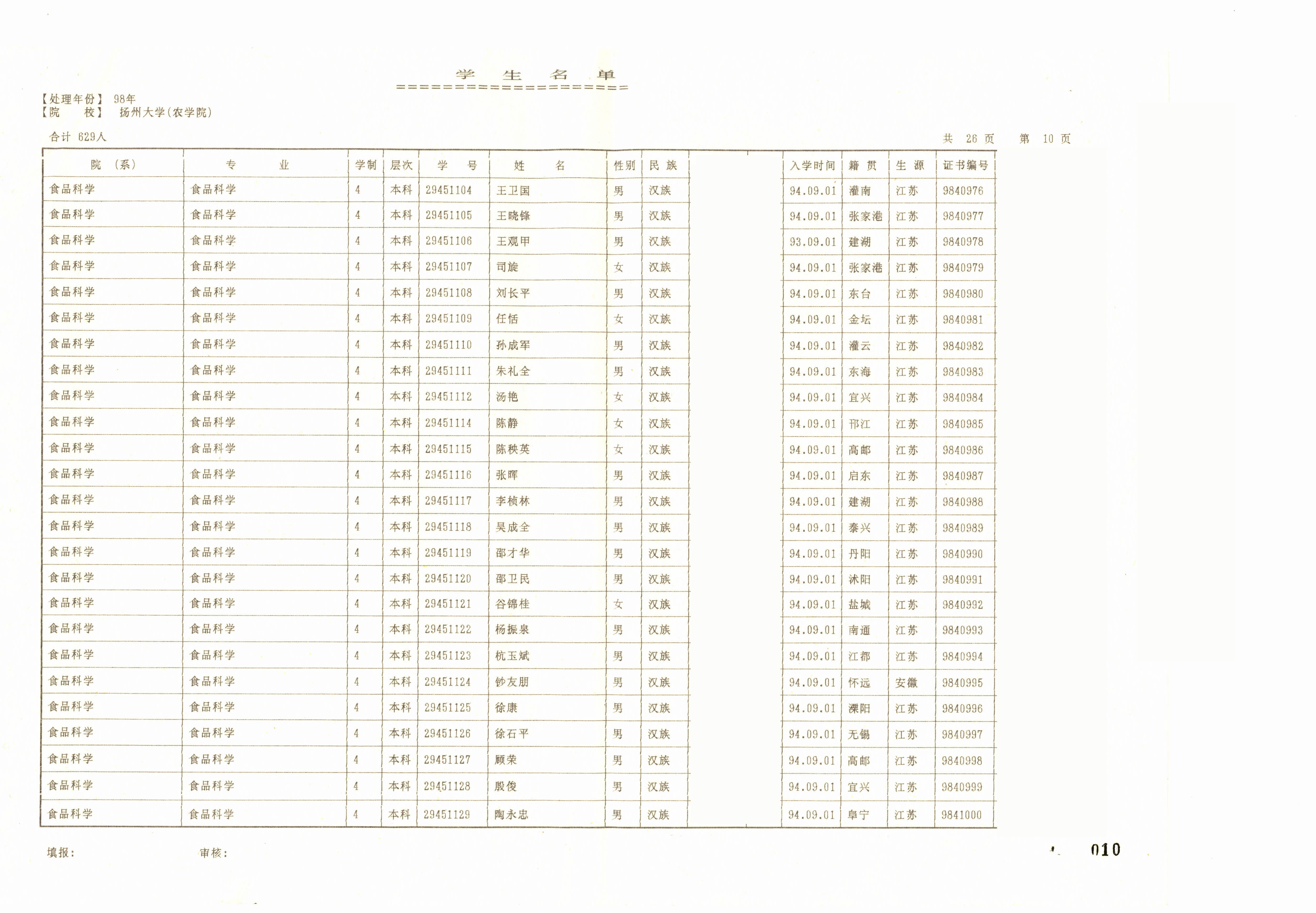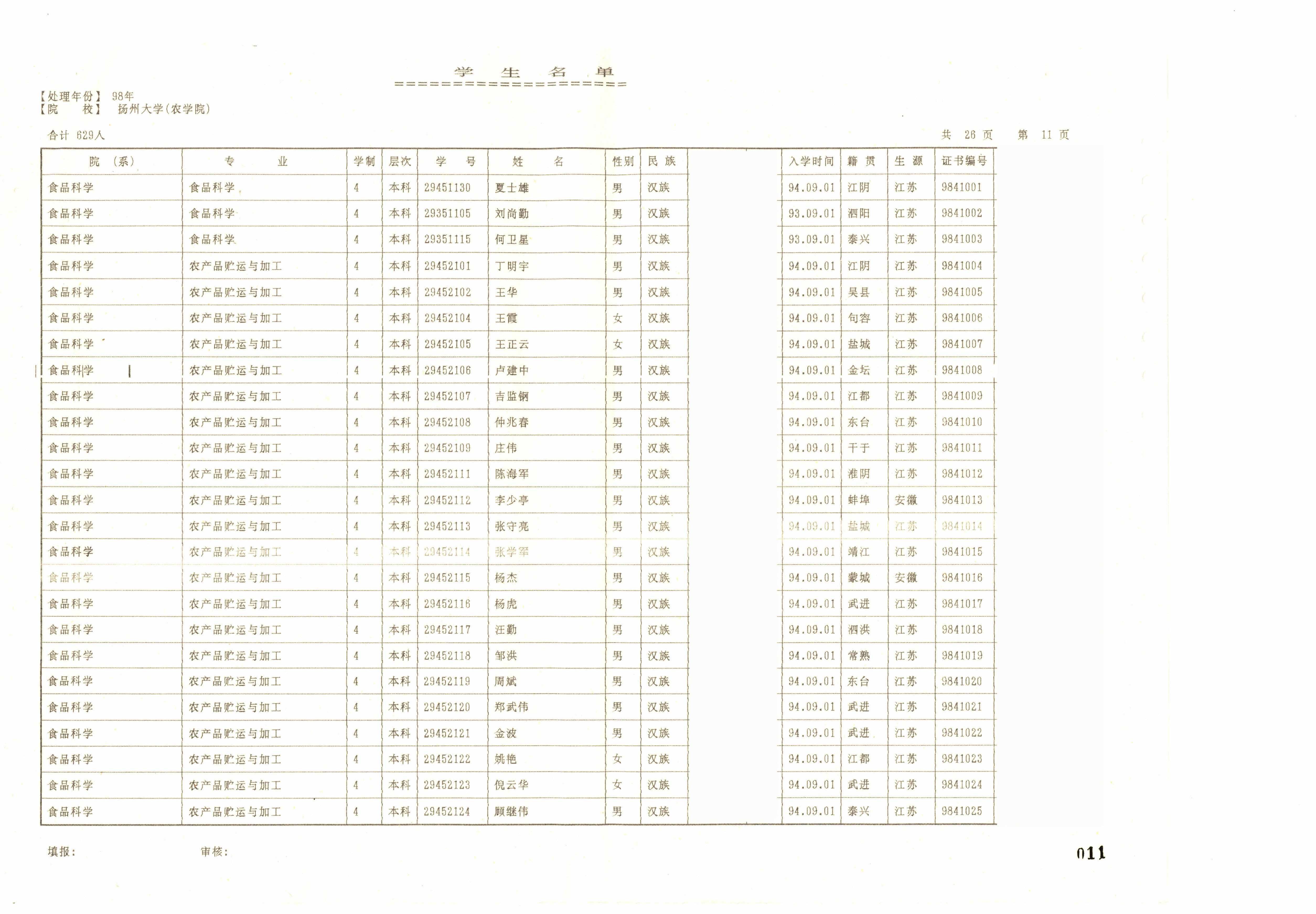 1994级食品科学(本)+1994级农产品贮运与加工(本)