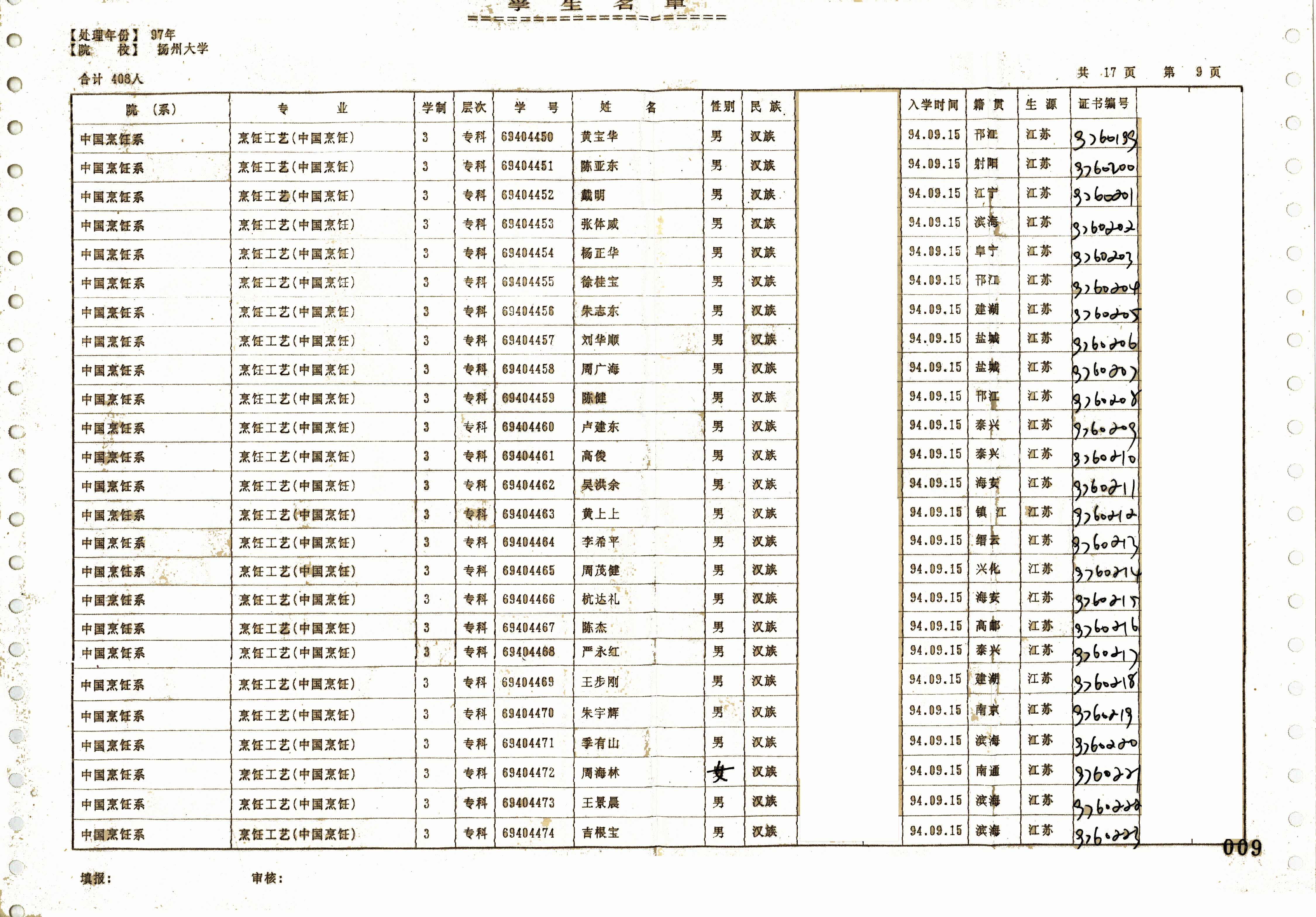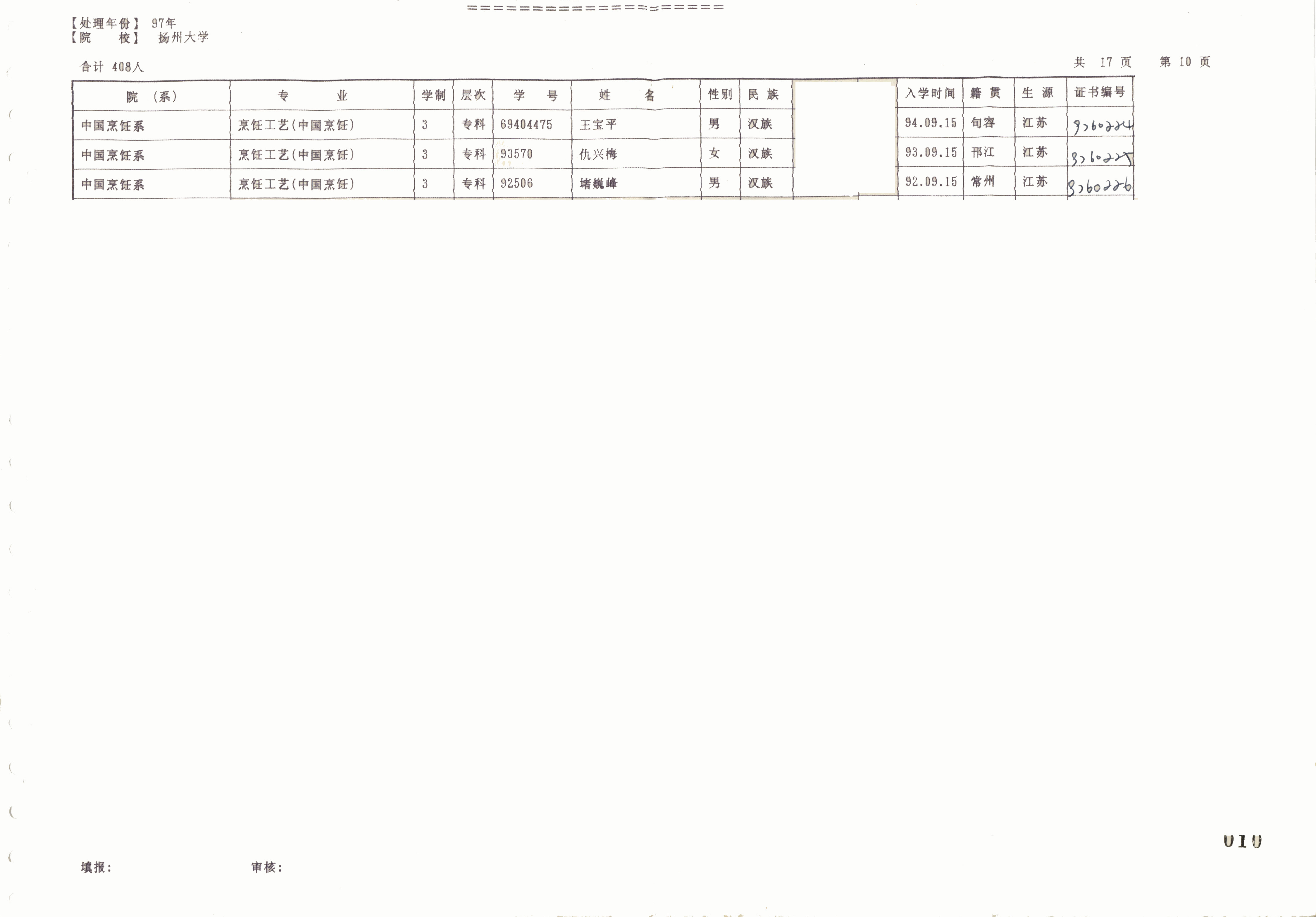 1994级烹饪工艺(中国烹饪)(专)