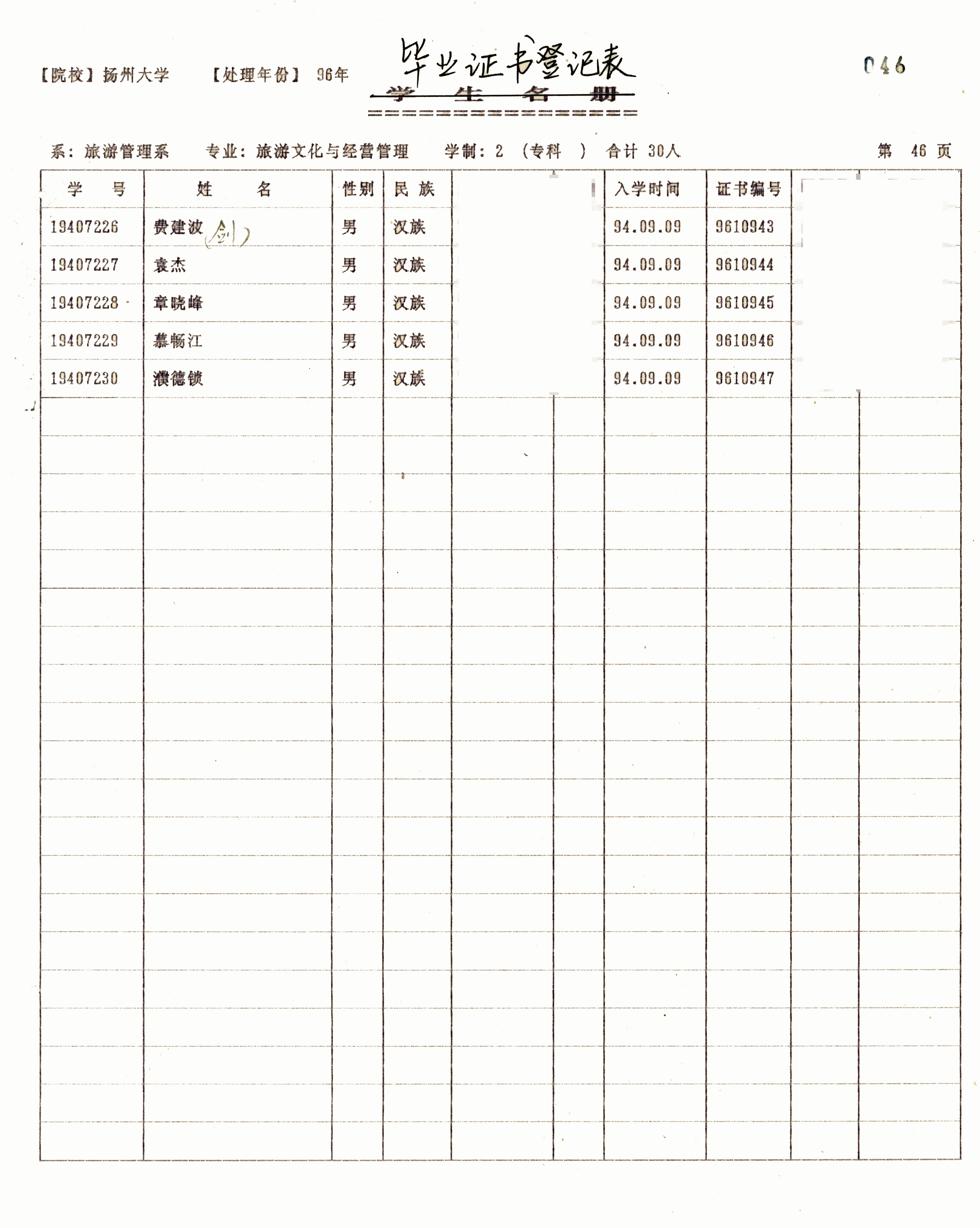 1994级旅游文化与经营管理(专)