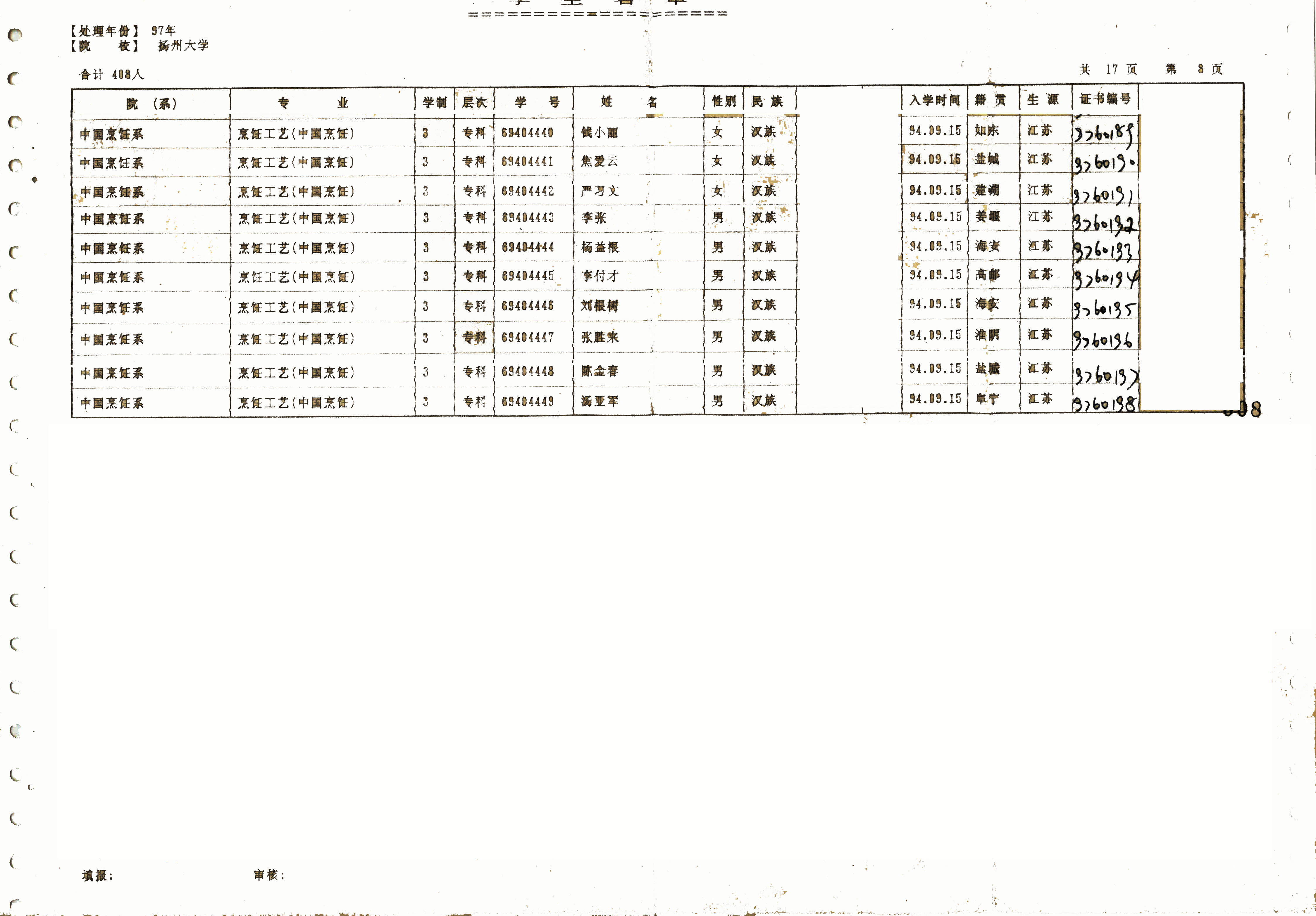 1994级烹饪营养(本)
