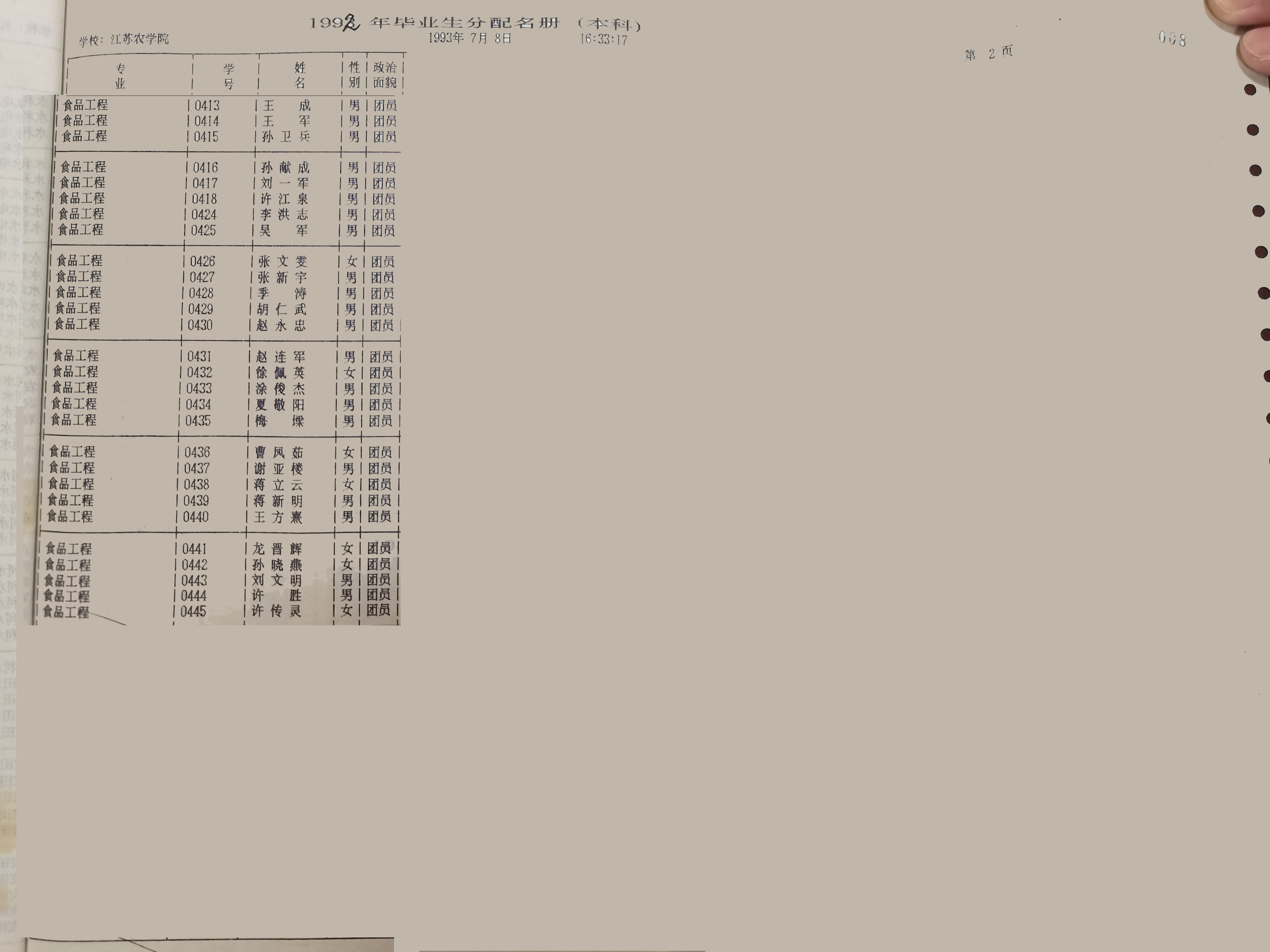 1988级食品工程(本)