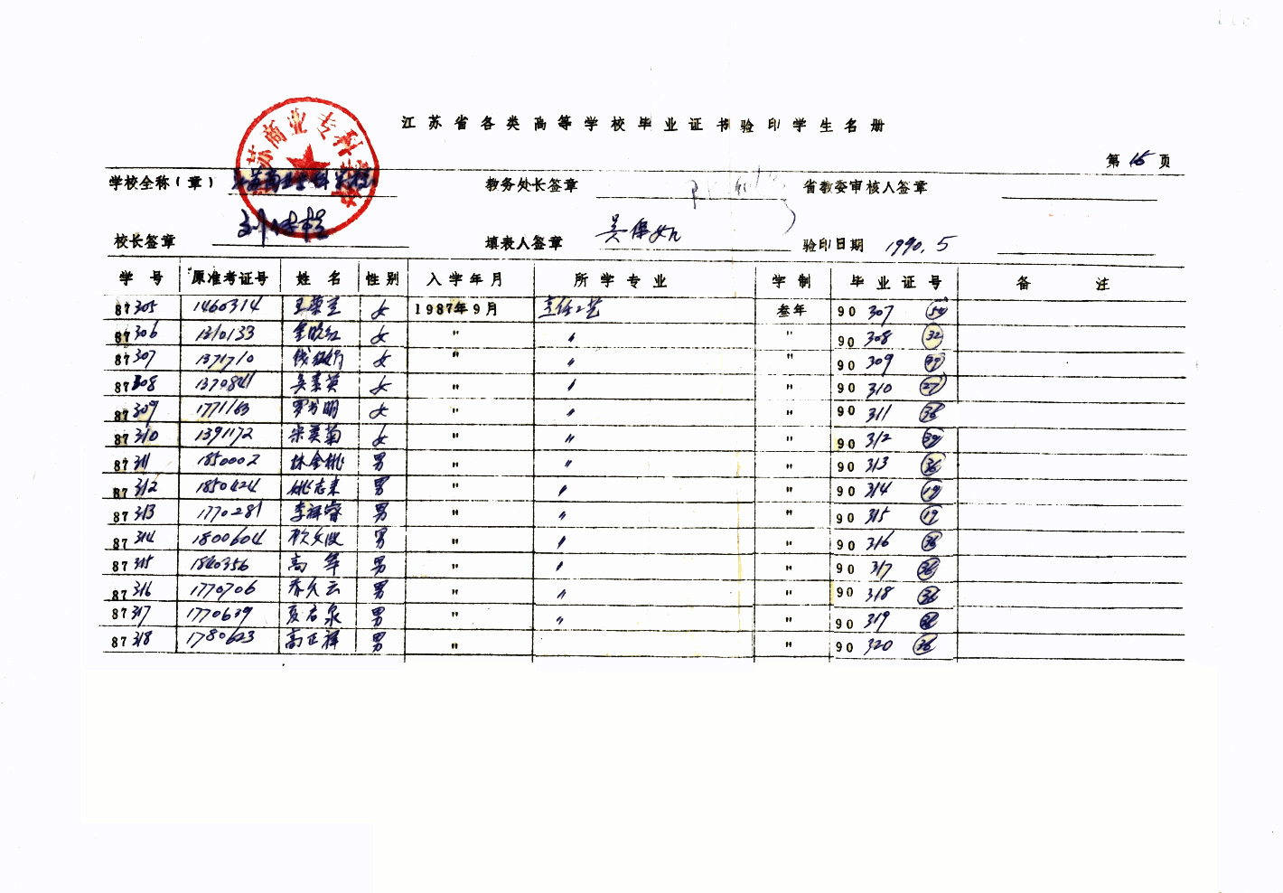 1987级烹饪工艺(专)