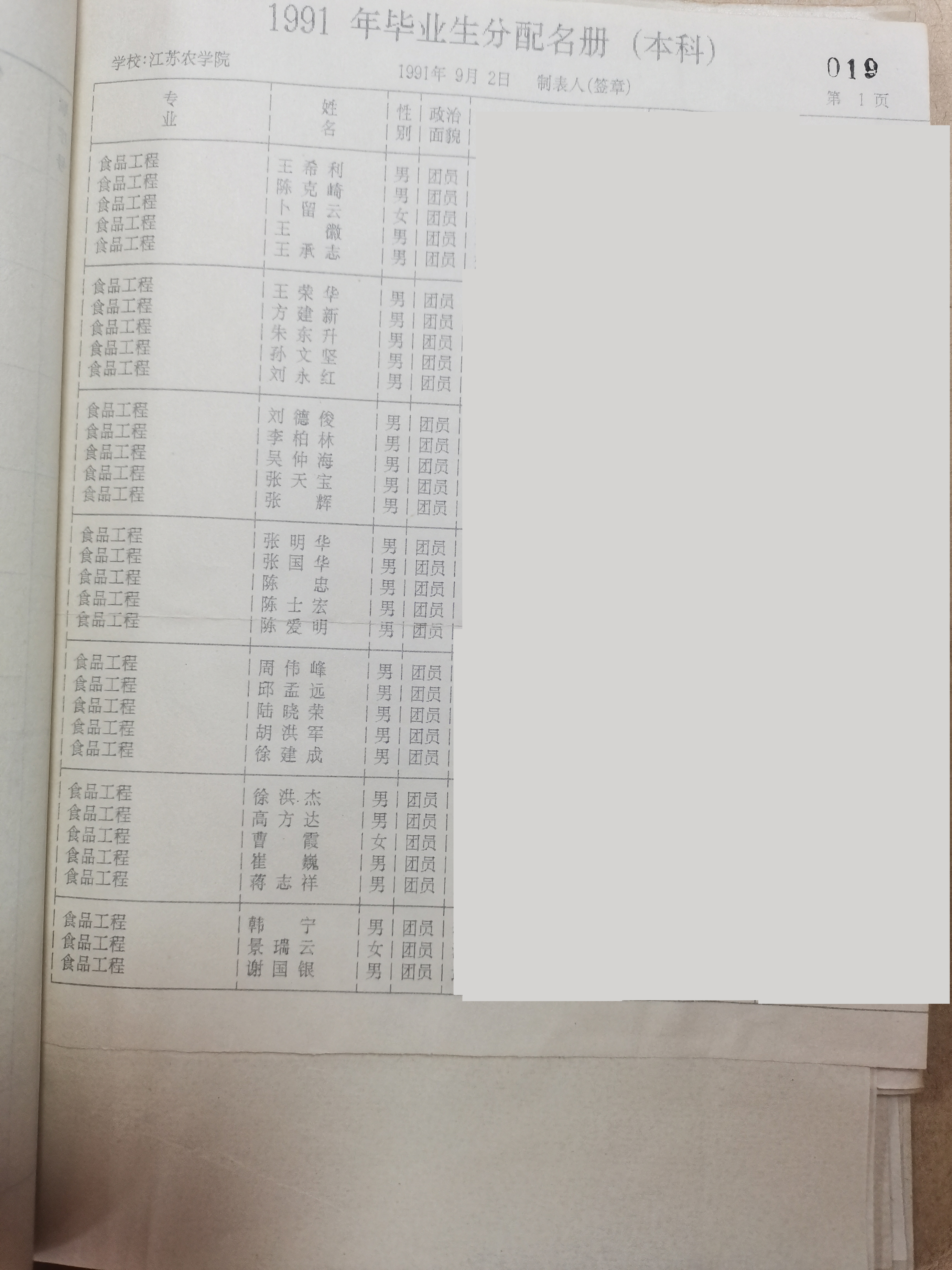 1987级食品工程(本)